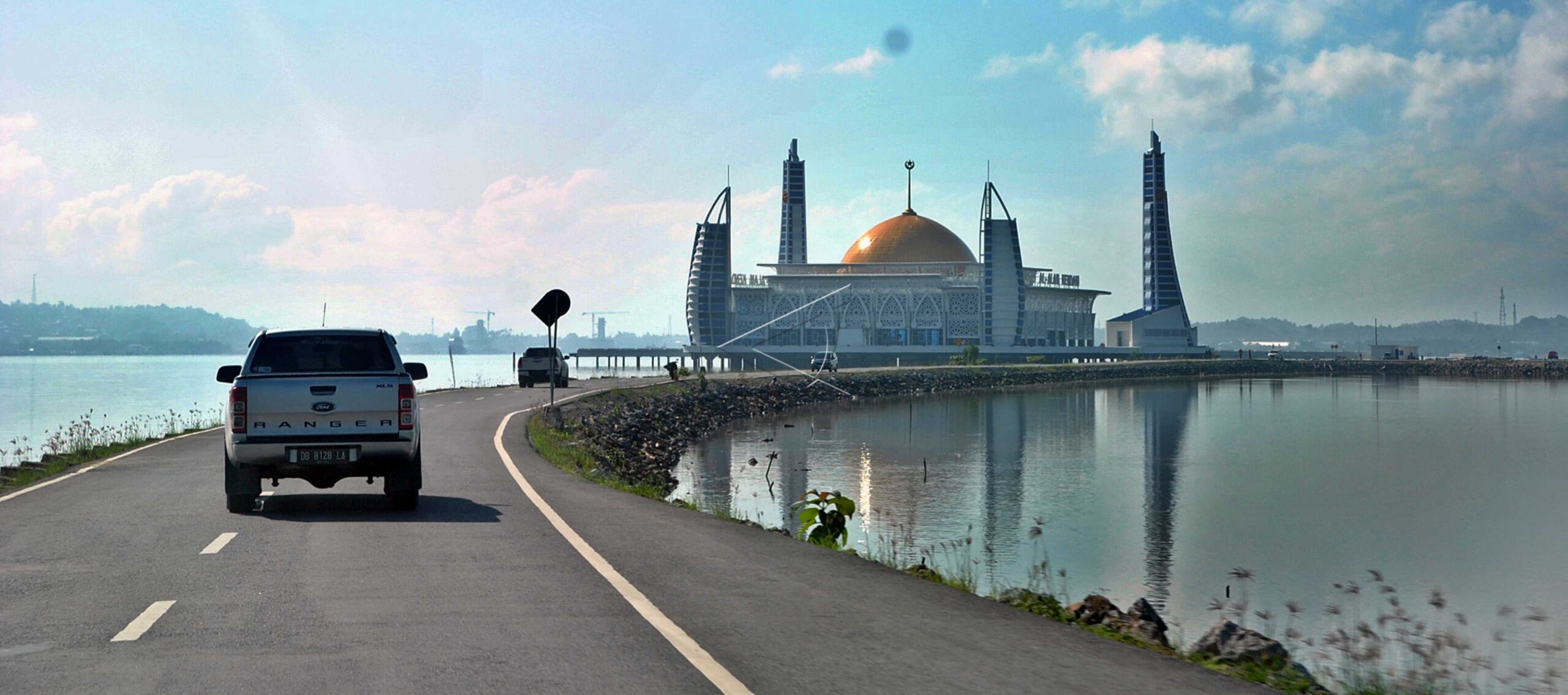 A car drive across a road outside Al Alam Mosque in Kendari, Southeast Sulawesi, June 21, 2019. ANTARA FOTO/Arif Firmansyah/dw/tom.