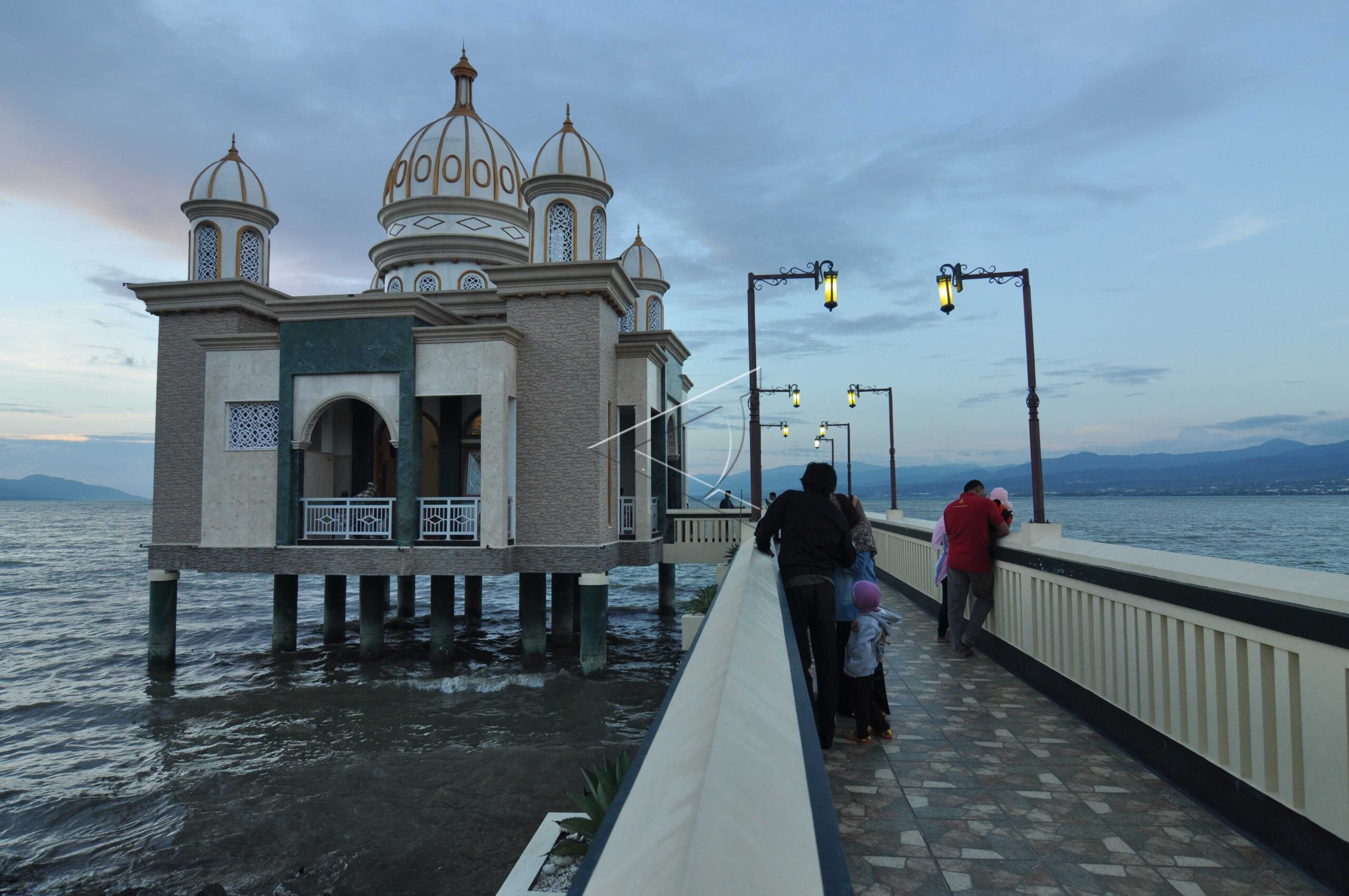 People enjoy the view at Arkam Babu Rahman Floating Mosque in Palu Bay Beach, South Sulawesi, July 27, 2013. ANTARA FOTO/Mohamad Hamzah/dw/tom.