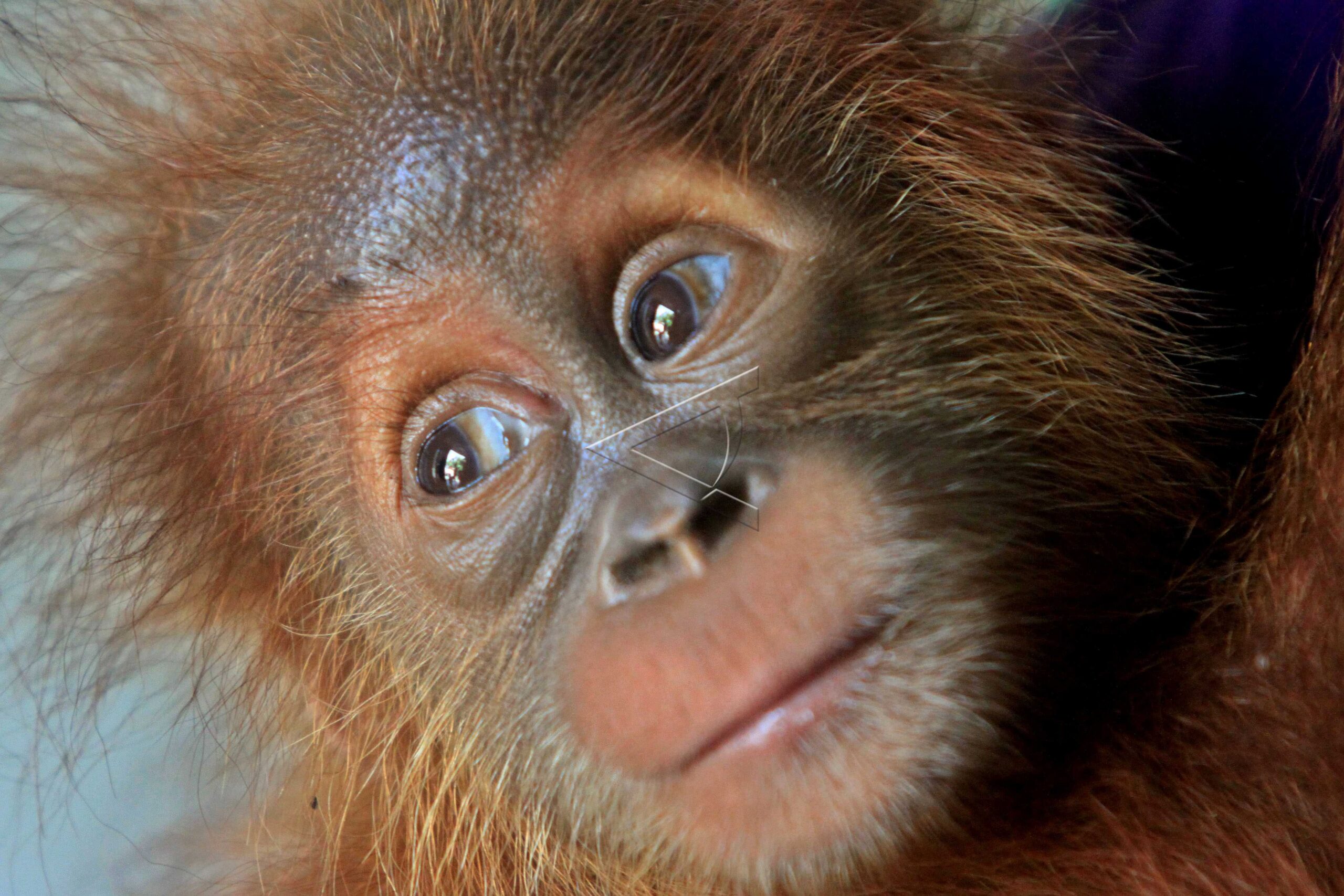 Five months old baby Sumatran orangutan (Pongo abelii) is inside a cage after being given voluntarily to Natural Resources Conservation Center and Sustainable Ecosystem Foundation in Teladan Jaya Village, Babahrot, Southwest Aceh, Aceh, August 19, 2019. ANTARA FOTO/Syifa Yulinnas/dw/tom.