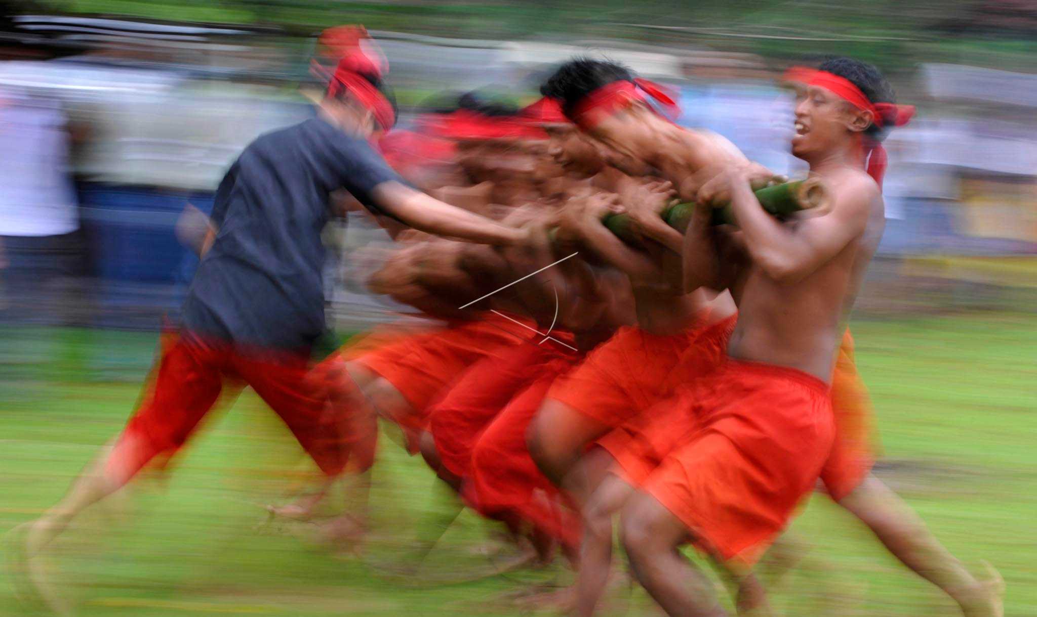 Several men perform ‘Bambu Gila’ (Crazy Bamboo) attraction in Liang Beach, Central Maluku, Maluku, May 14, 2011. ANTARA FOTO/Fanny Octavianus/pd/dw/wpa.