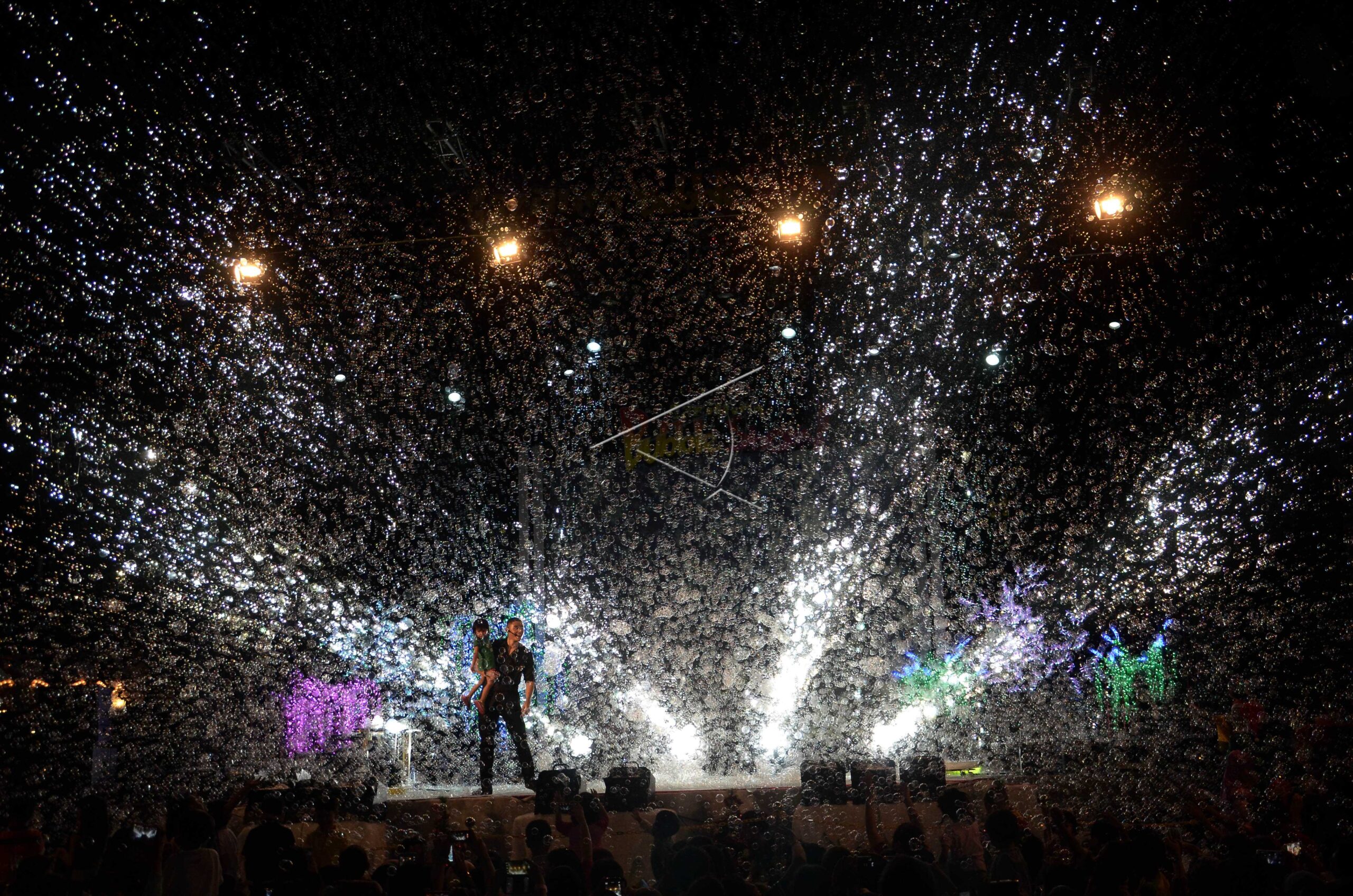 Bubble-blowing artist from the United States, Deni Yang in action during the Gazzilion Bubble Show at the Trans Mall, Makassar, South Sulawesi, December 26, 2014. ANTARA FOTO/Dewi Fajriani/nz/dw/nym.