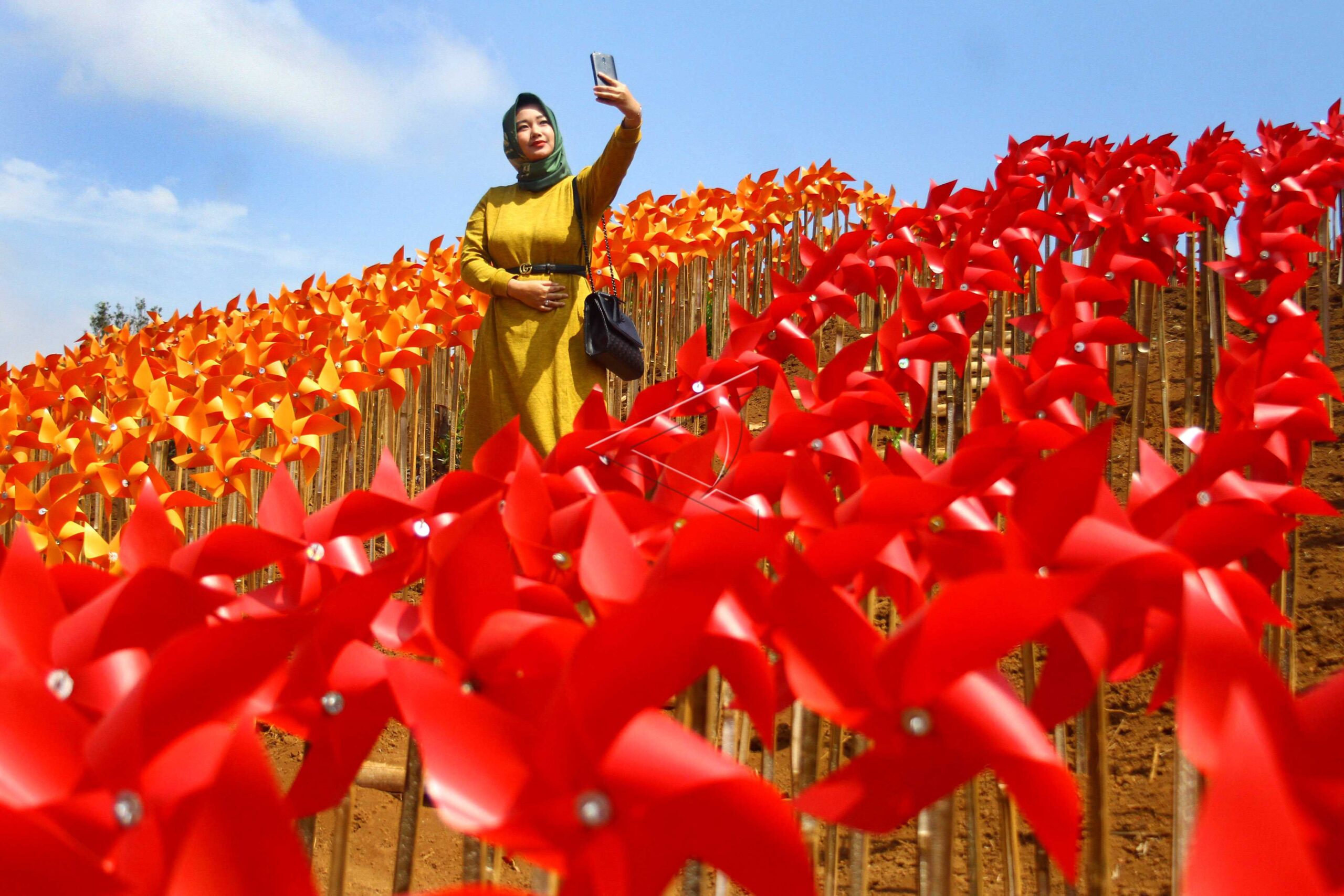 A visitor takes a selfie at Bumi Kitiran tourist site in Bumiaji, Batu, East Java, August 20, 2019. ANTARA FOTO/Ari Bowo Sucipto/dw/tom