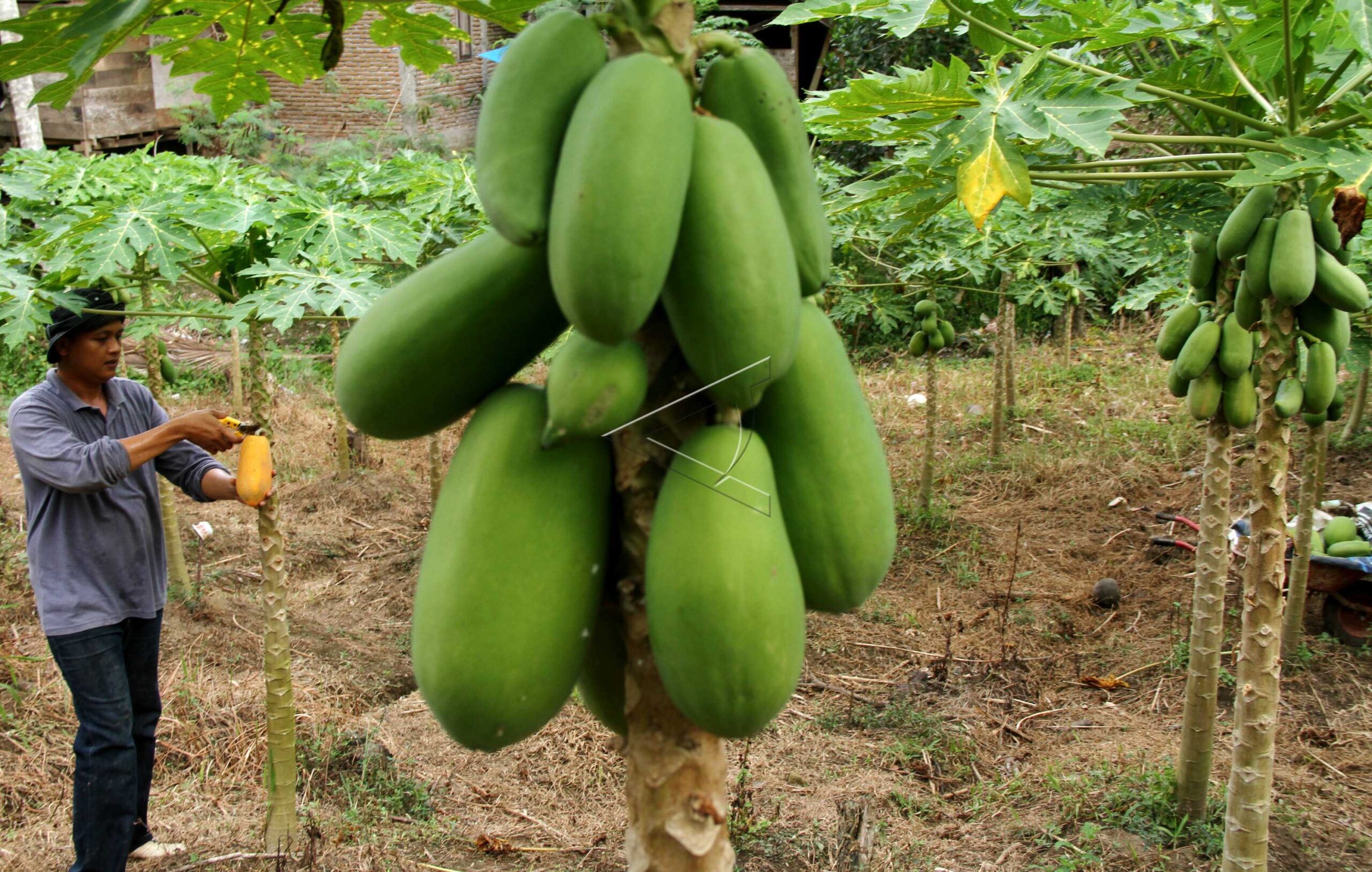 A farmer harvests California papaya in Sese plantation, Mamuju, West Sulawesi, July 24, 2018. ANTARA FOTO/Akbar Tado/sa.