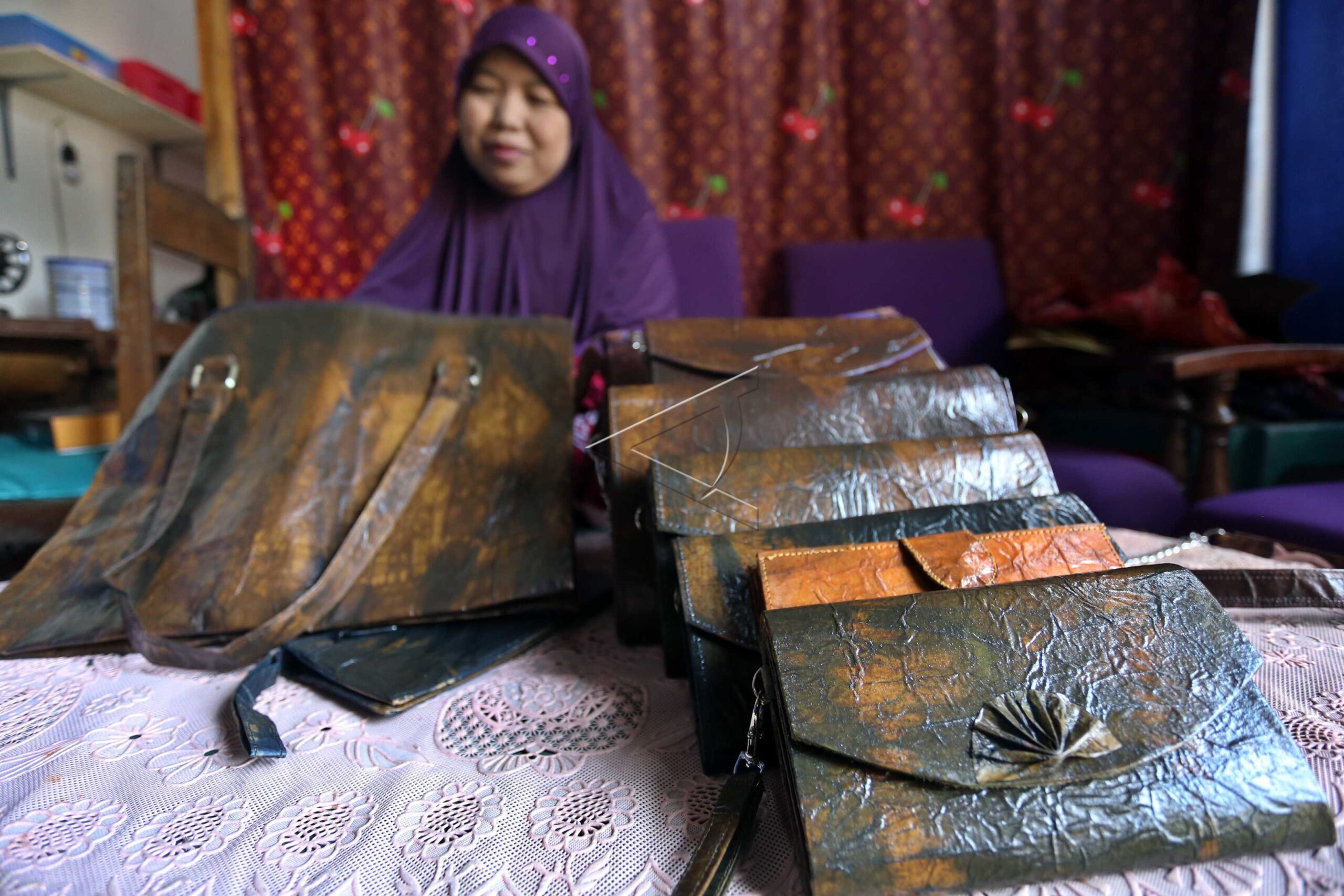 A Craftsman finishes making bags made from recycled cement-wrapped paper, in Blitar, East Java, August 20, 2016. ANTARA FOTO/Irfan Anshori/dw/tom/sa.
