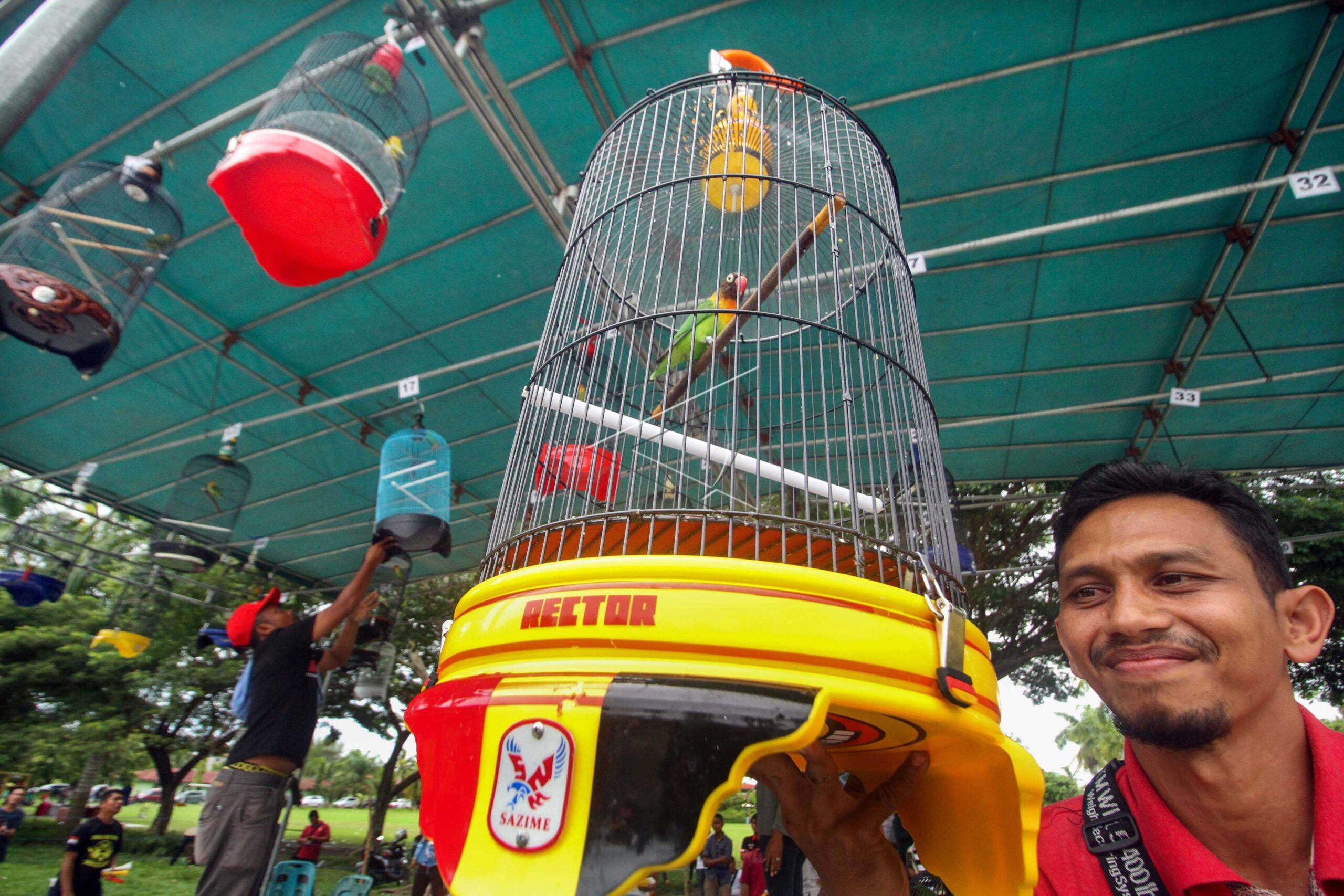 Participants prepare birds that being contested in the chirping bird contest at Ex-114 Square in Lhokseumawe, Aceh, August 25, 2019. ANTARA FOTO/Rahmad/dw/tom