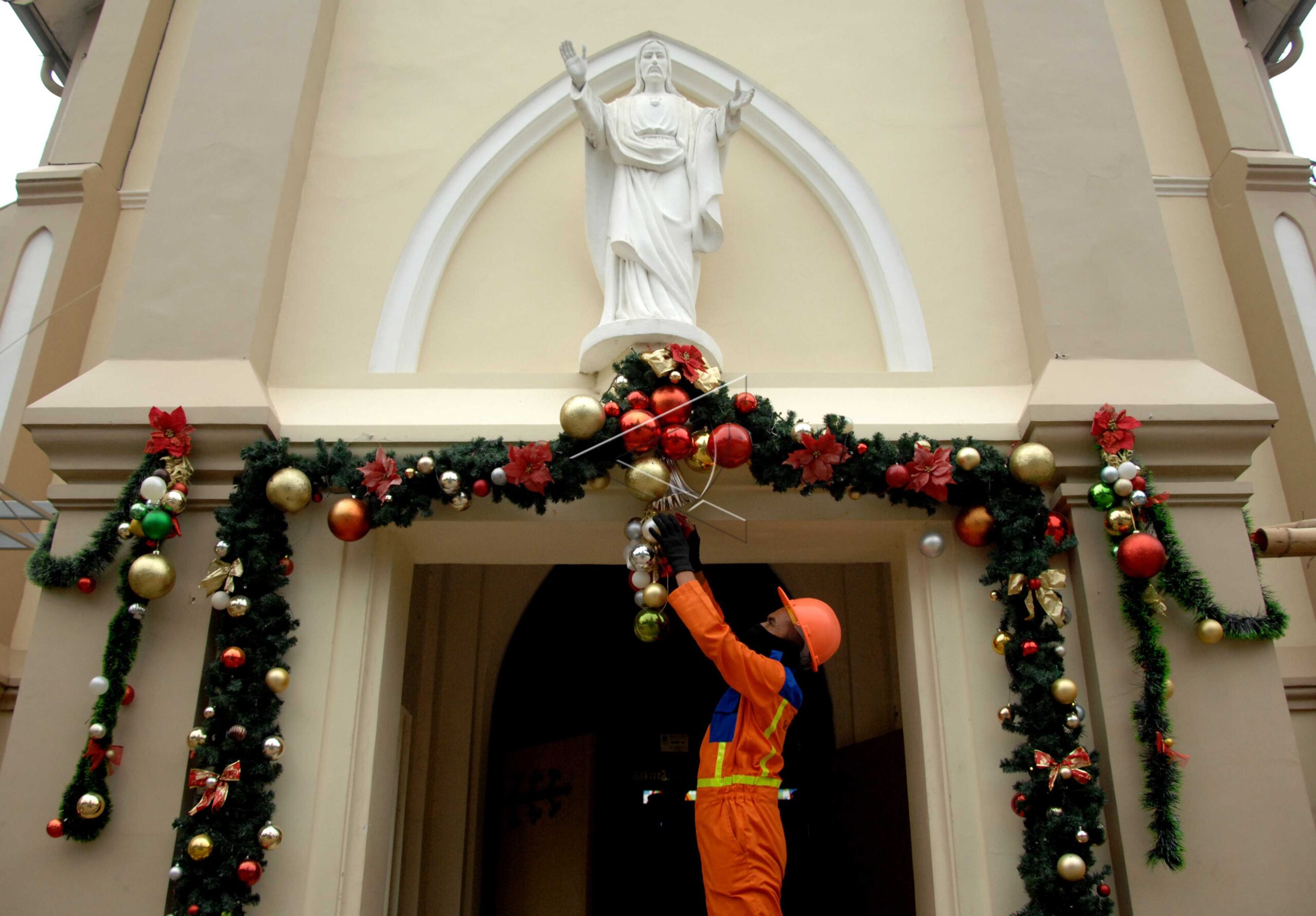 A worker sets Christmas ornaments at the Cathedral Church in Makassar, South Sulawesi. December 19, 2019. ANTARA FOTO/Abriawan Abhe/aww/dw/nym.