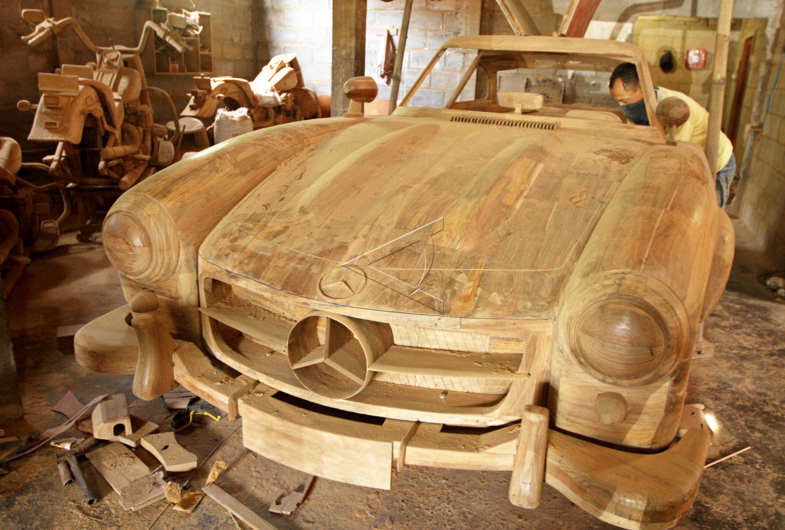 A worker finishes making a replica of the classic 1950s Mercedes-Benz 300SL car in Boyolali, Central Java, October 29, 2013.ANTARA FOTO/Akbar Nugroho Gumay/ed/pd/ox/dw/13/sa.