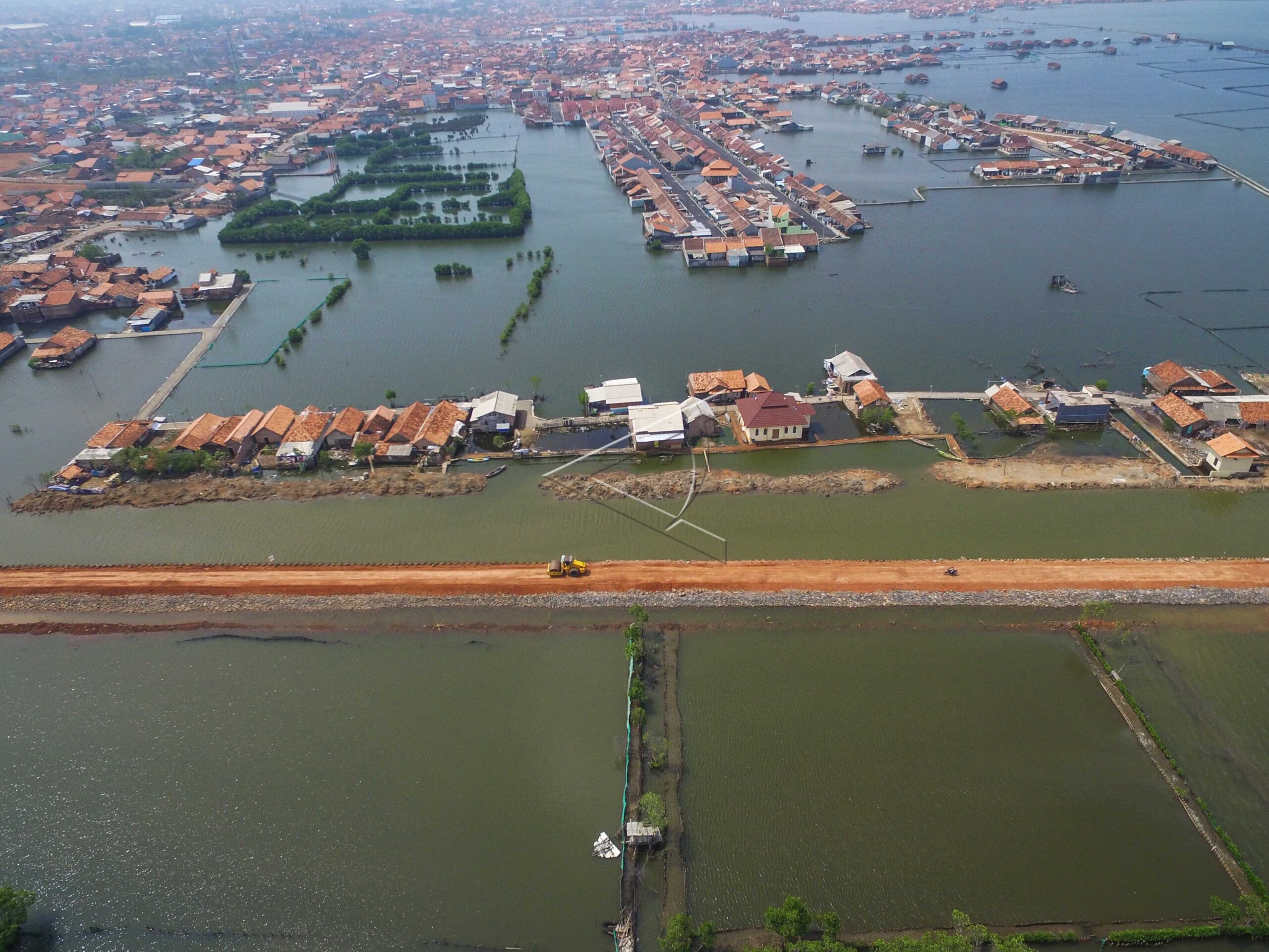 Aerial view of construction of tidal dike in northern coastal of Pekalongan in Central Java, January 15, 2019. ANTARA FOTO/Harviyan Perdana Putra/dw/pras.