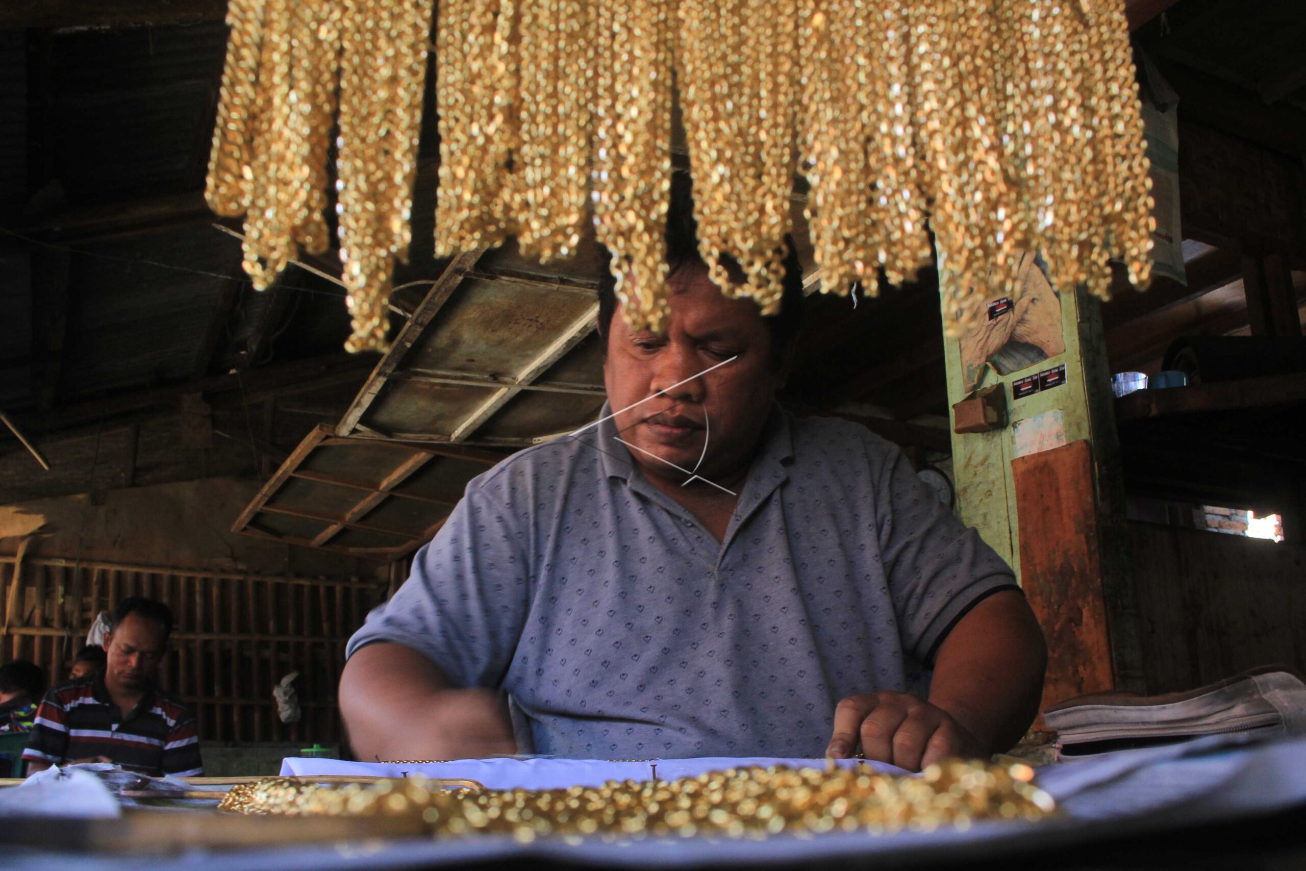 A craftsman finishes making copper jewelry in Indramayu, West Java, August 30,2019. ANTARA FOTO/Dedhez Anggara/dw/tom/sa.