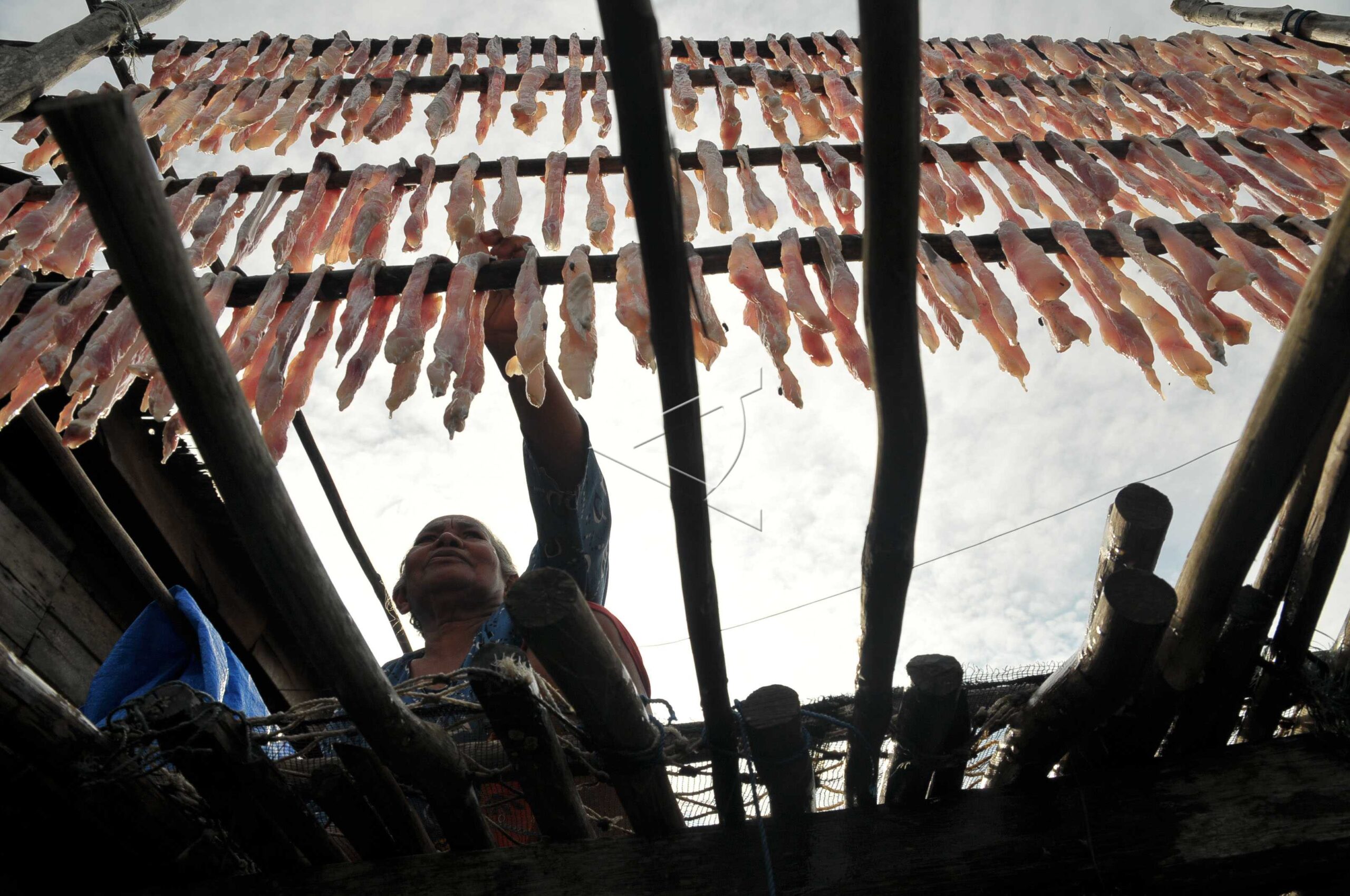 A mother from Bajo Tribe dries stingrays which have been cut in Mekar Village, Konawe, Southeast Sulawesi, November 4, 2011. ANTARA FOTO/Zabur Karuru/dw/WSJ.