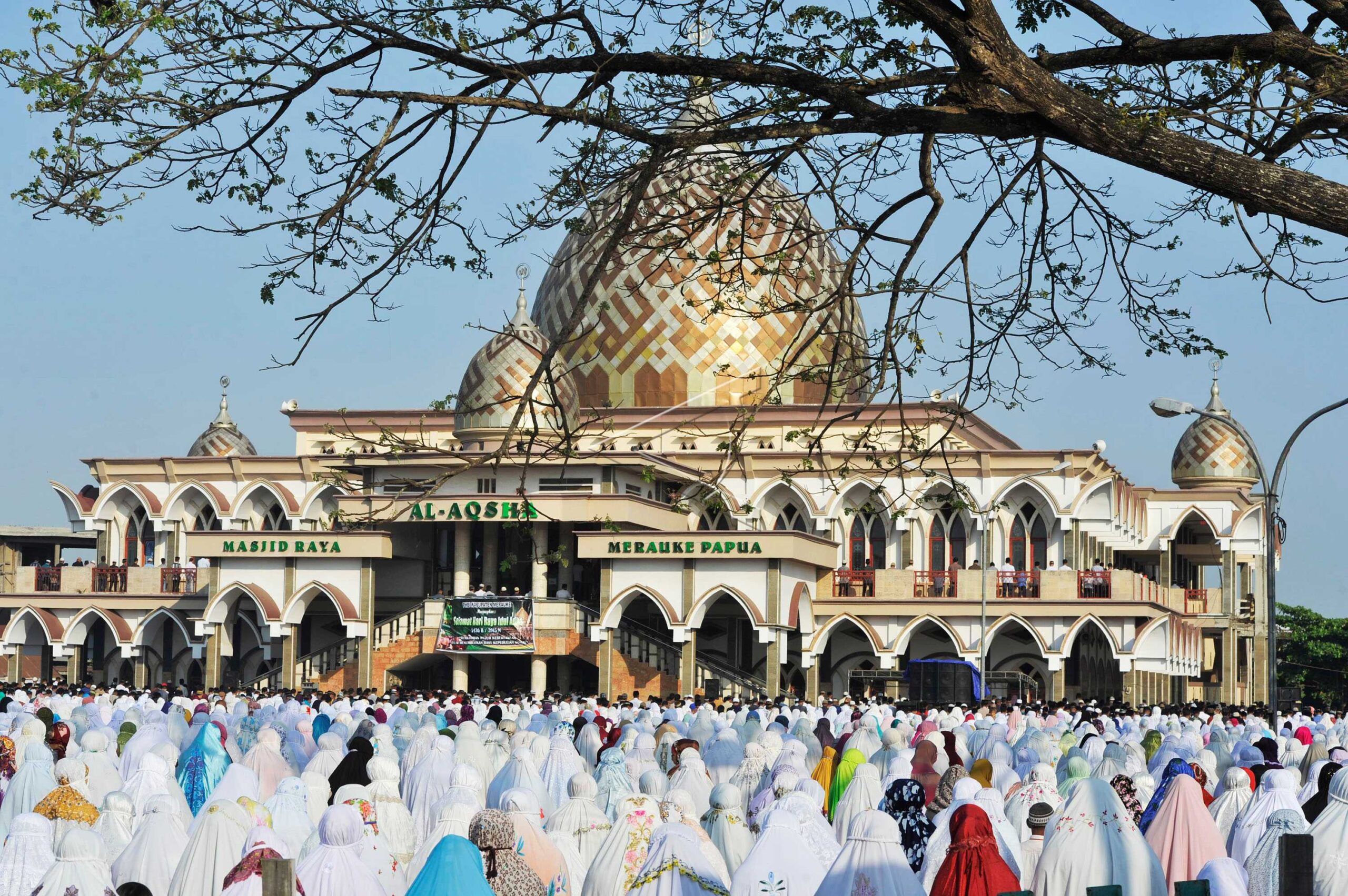 Muslims perform Eid Al-Adha prayers 1436 Hijri at Al Aqsha Great Mosque, in Merauke, Papua, September 24, 2015. ANTARA FOTO/Andika Wahyu/kye/dw/nym.