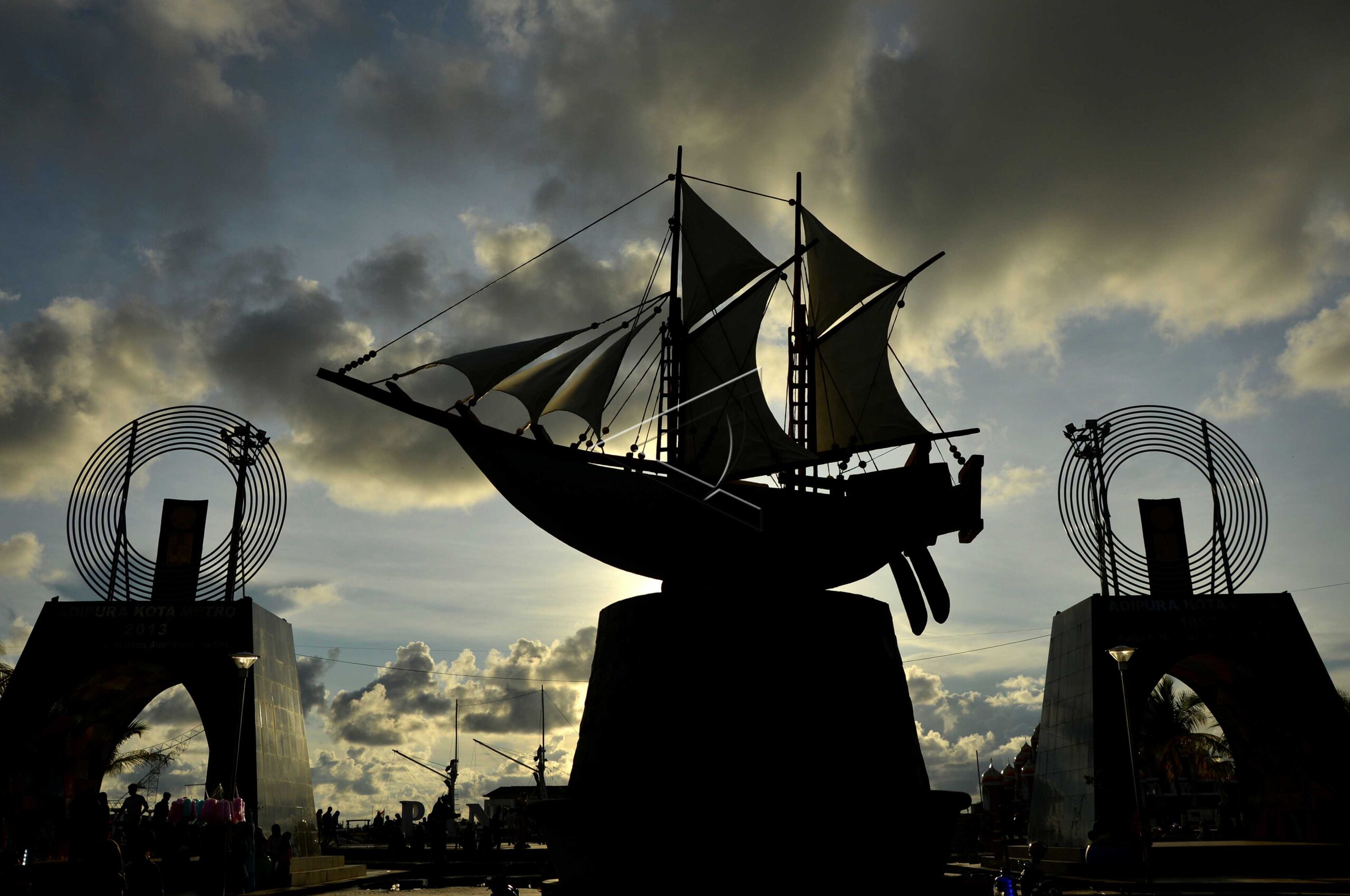 People enjoy the view of the end of year 2019 sunset at the Losari Beach Pavilion, Makassar, South Sulawesi, December 31, 2019. ANTARA FOTO/Abriawan Abhe/dw/tom.