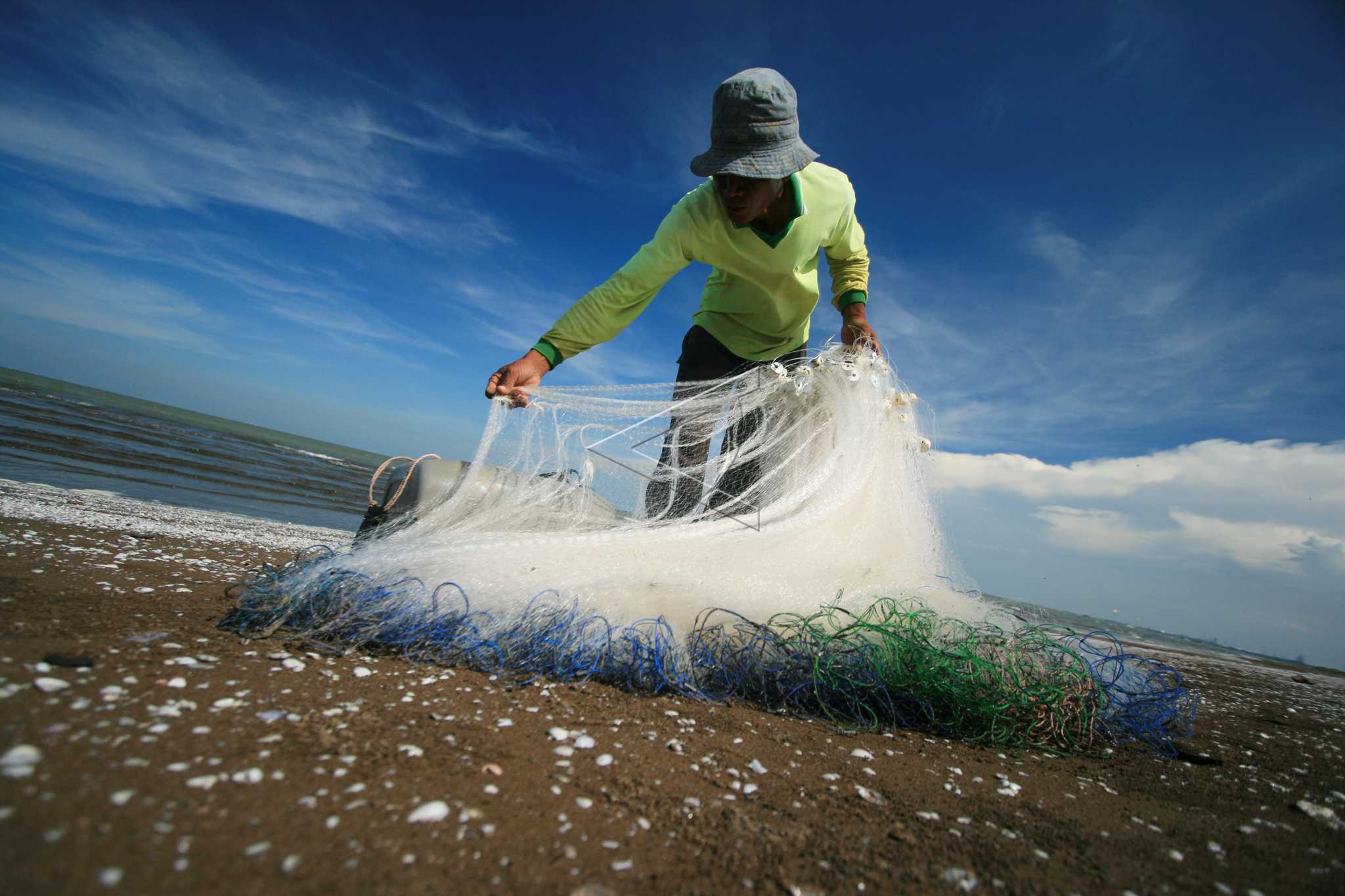 Fisherman prepares a net before going to the sea in Singaraja beach, Indramayu, West Java, November 27, 2013. ANTARA FOTO/Dedhez Anggara/spt/dw/nym.