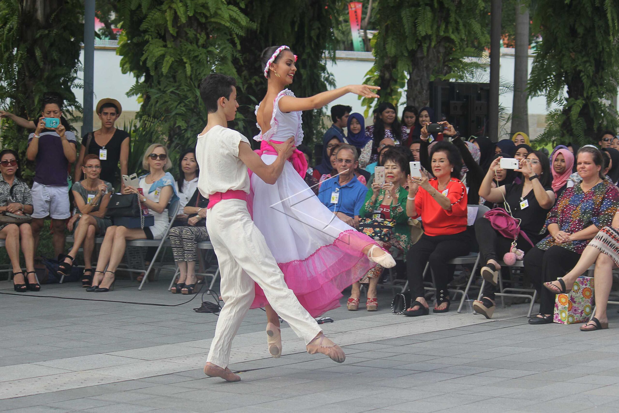 The United States Consul General in Surabaya Heather Variava (right) and guests watch the Huapanggo Dance from Mexico during a five-country dance performance in Surabaya, East Java, June 16, 2016. ANTARA FOTO/Moch Asim/pd/dw/nym