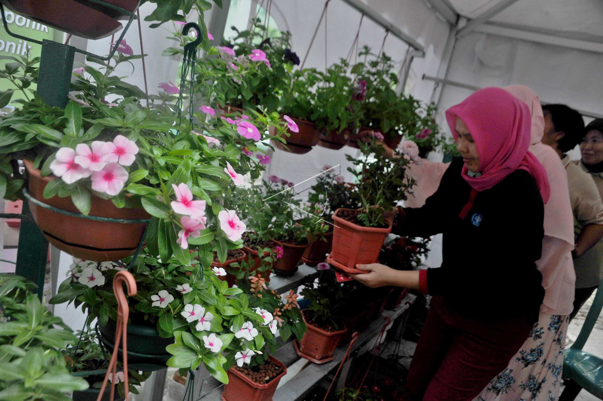 Visitors choose decorative plants at a stand of Flower and Fruits Exhibition at Kambang Iwak in Palembang, South Sumatra, February 3, 2017. ANTARA FOTO/Feny Selly/dw/tom.