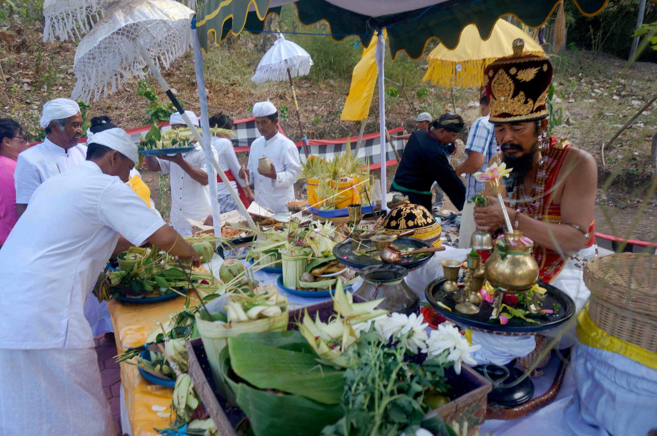 Hindu devotees perform the Galungan Day ritual, which is the victory day of good (dharma) against evil (adharma) at the Jagat Tulung Urip Temple, Tulungagung, East Java, July 24, 2019. ANTARA FOTO/Destyan Sujarwoko/foc/dw/nym
