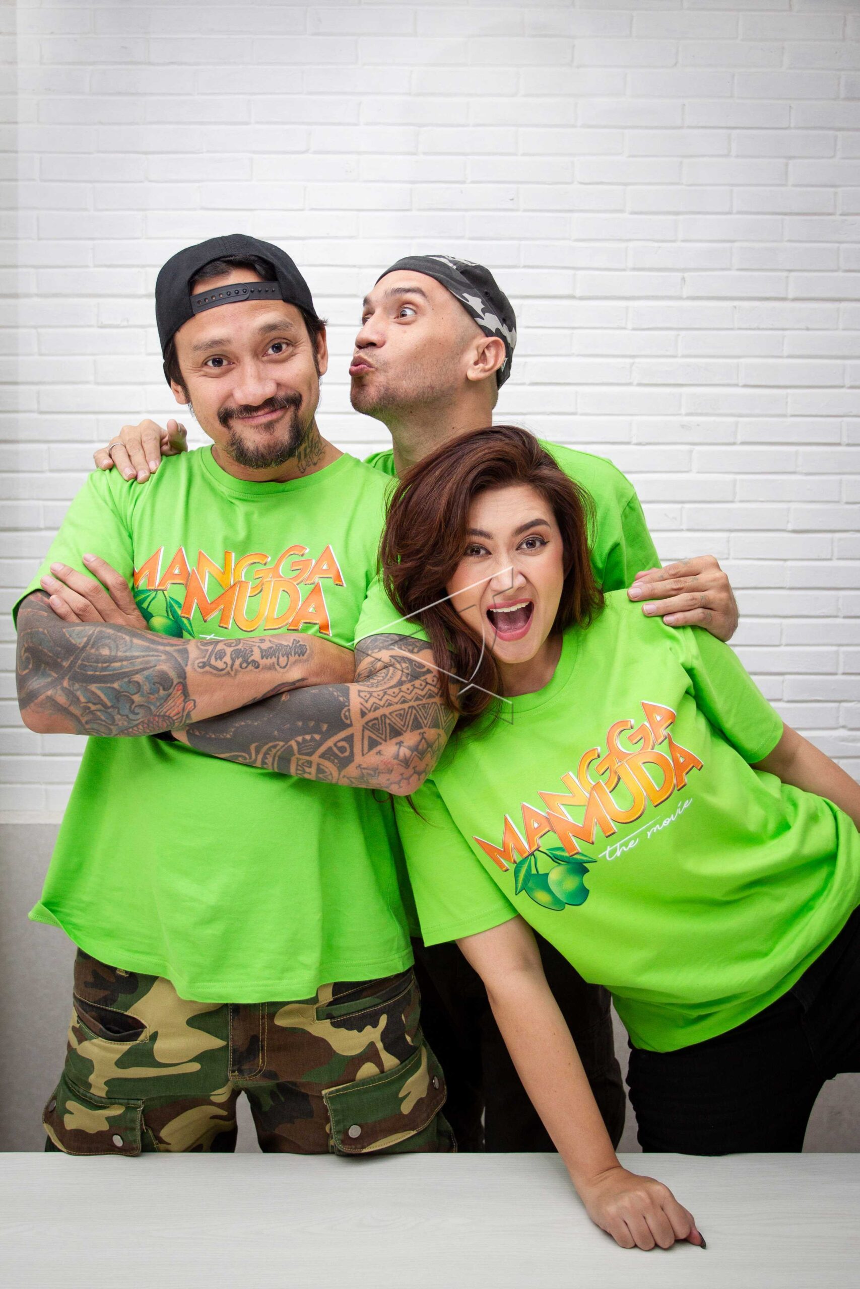 Casts from Mangga Muda, Tora Sudiro (left), Gary Iskak (center) and Nafa Urbach (right) pose after a special interview with Antara News Agency in Wisma Antara, Jakarta, January 6, 2020. ANTARA FOTO/Dhemas Reviyanto/wsj/dw/sa.