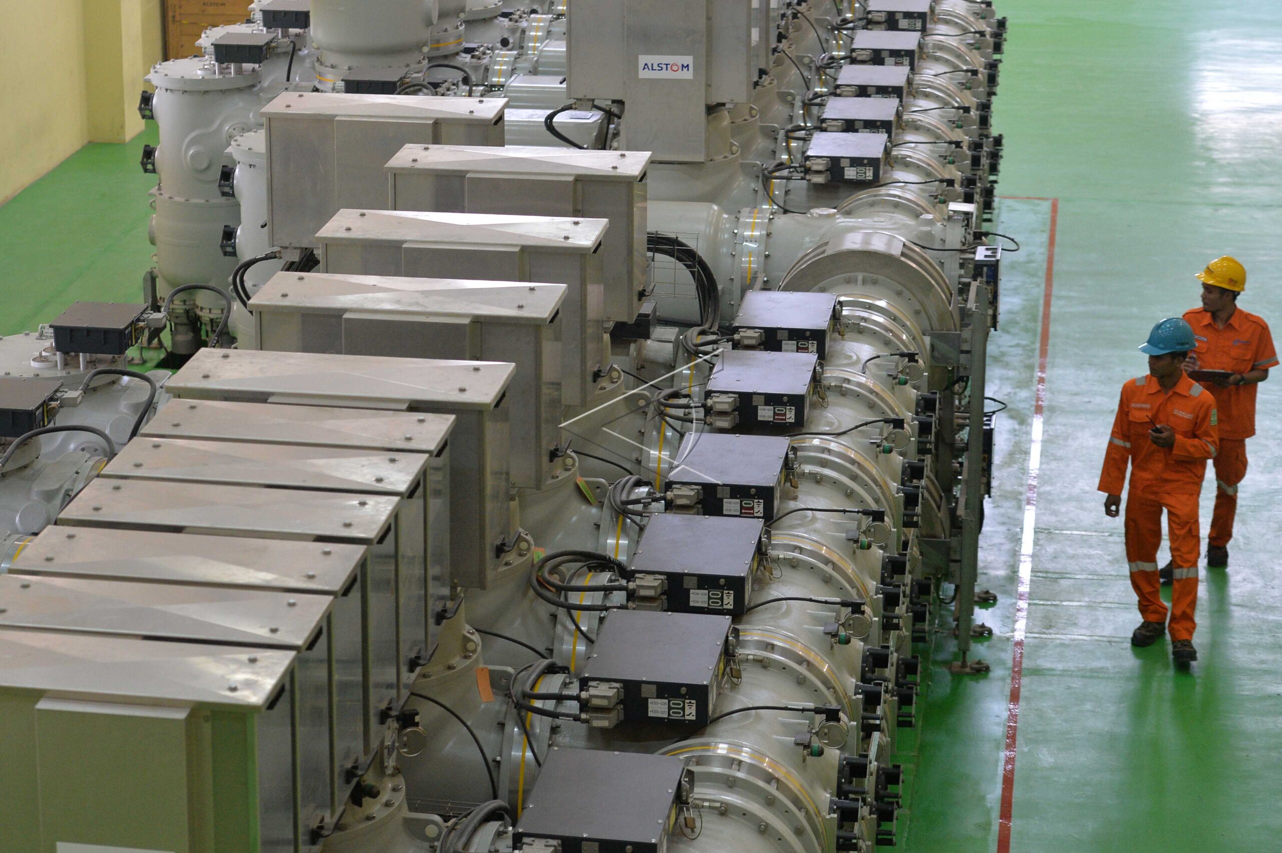 Workers conduct routine checks on GIS (Gas Insulated Switchgear) New Pulogadung after the operation launching at the PT PLN (Persero) TJBB-APP Pulogadung Complex, in Jakarta, September 22, 2017. ANTARA FOTO/Widodo S Jusuf/dw/pras.