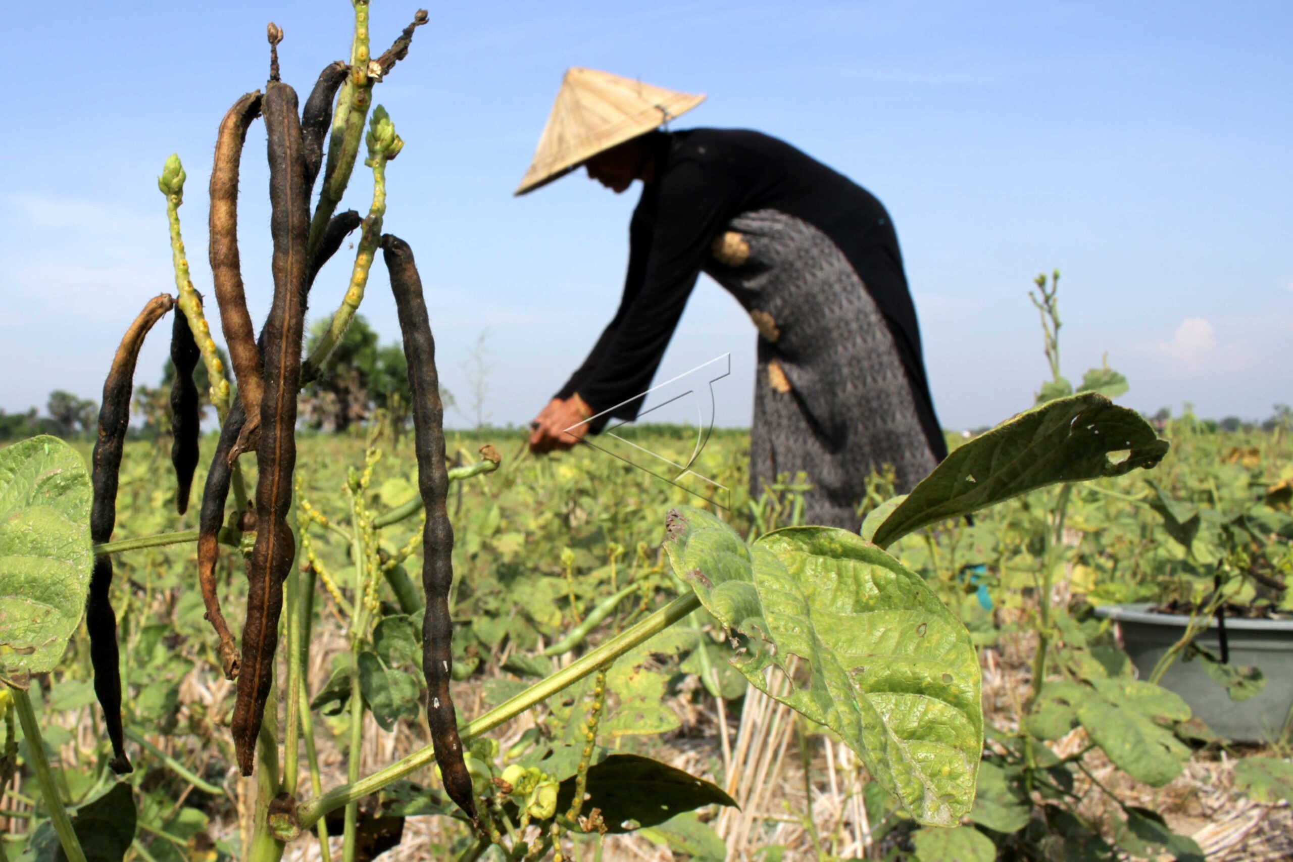 Farmer harvests green beans whose yields are not optimal due to drought in Barombong District, Gowa, South Sulawesi, October 27, 2019. ANTARA FOTO/Arnas Padda/ama/dw/nym/sa.