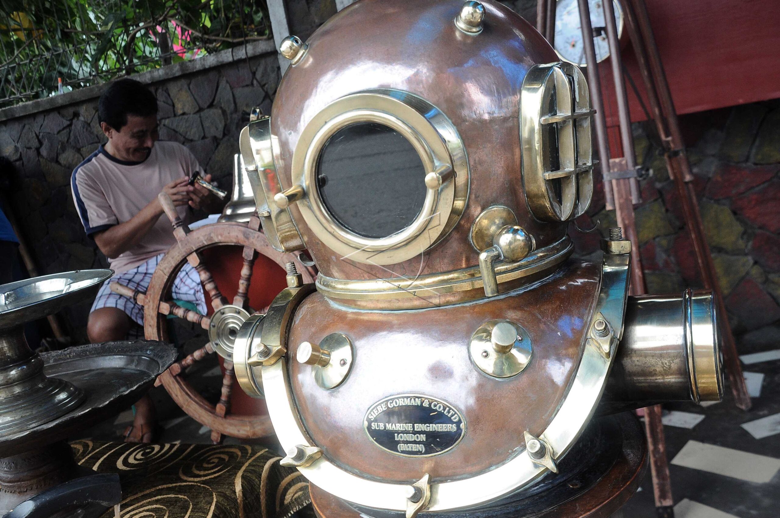 Hagenuk diving helmet on display for sale, in Makassar, South Sulawesi, January 13, 2013. FOTO ANTARA/Dewi Fajriani/dw/tom/sa.