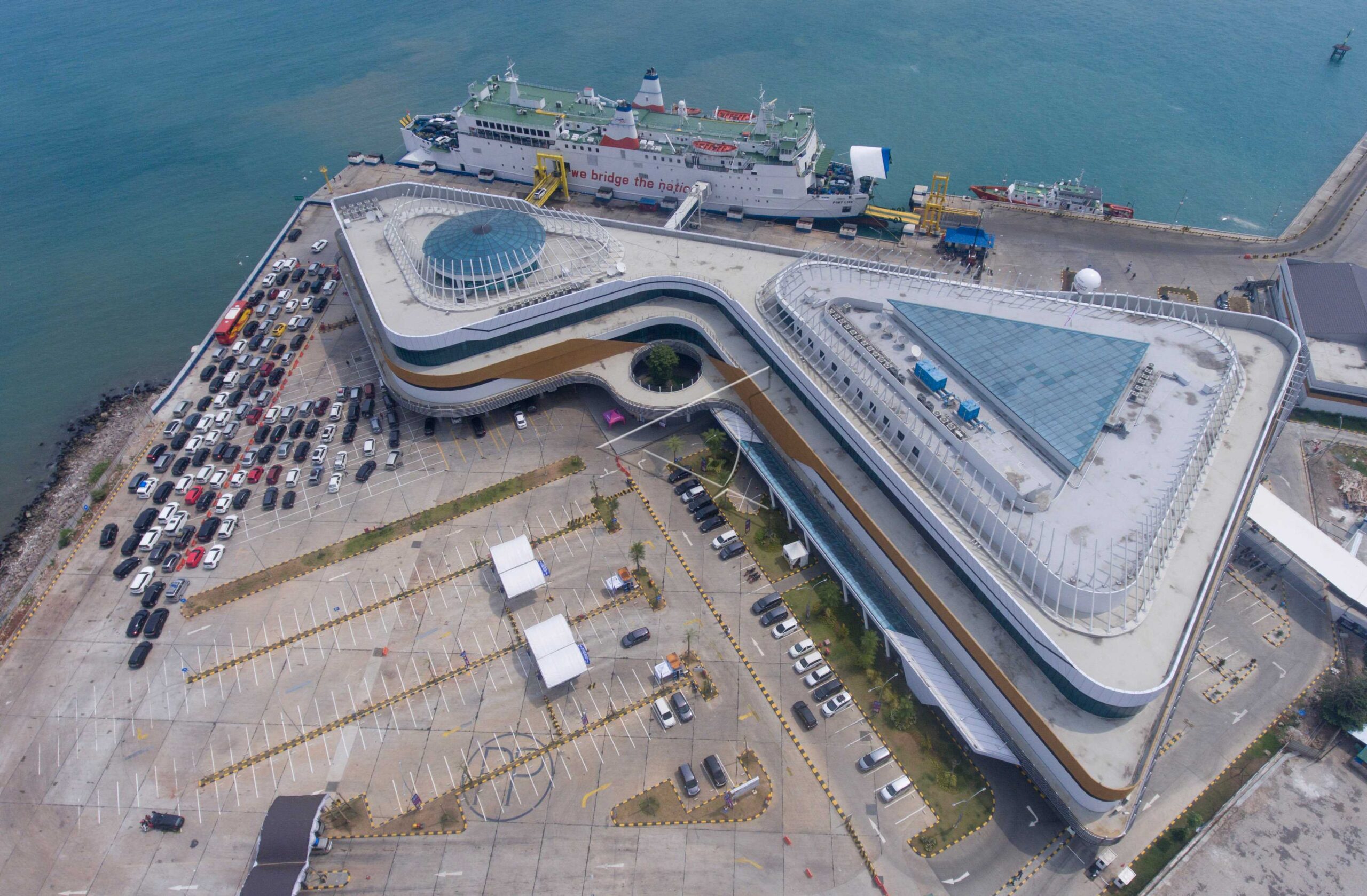 Vehicles en route to Sumatra are seen queueing to enter Roro boat at Sosoro Executive Dock in Merak Port, Banten, June 2, 2019. ANTARA FOTO/Hafidz Mubarak A/hp/dw/nym.