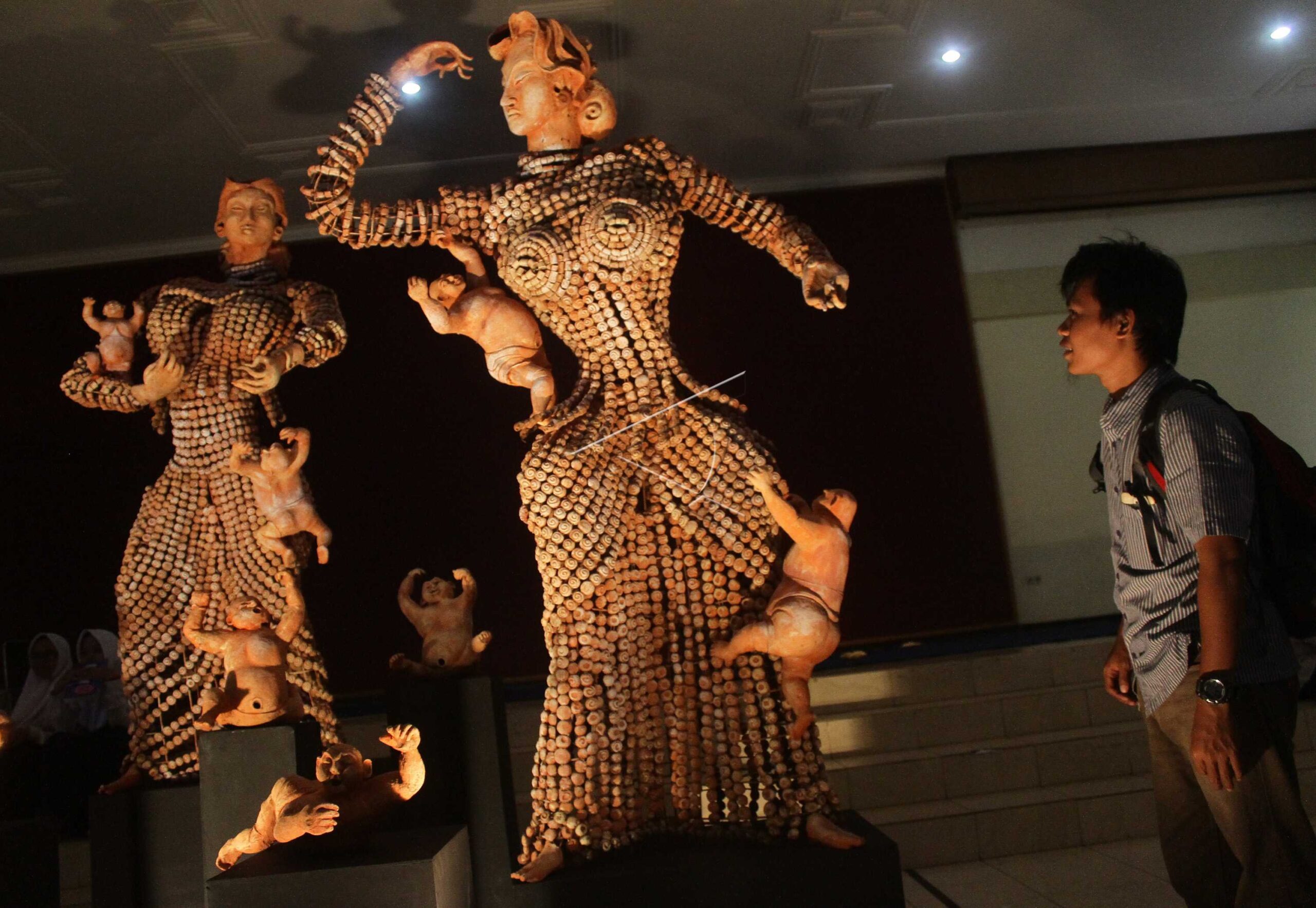 A visitor looks on a sculpture entitled ‘Ikhlas Tanpa Batas” (Sincere With No Limits) by Ponimin during an international art festival “Art East Ism 2016” at Sasana Budaya Building in Malang, East Java, October 10, 2016. ANTARA FOTO/Ari Bowo Sucipto/foc/dw/nym.