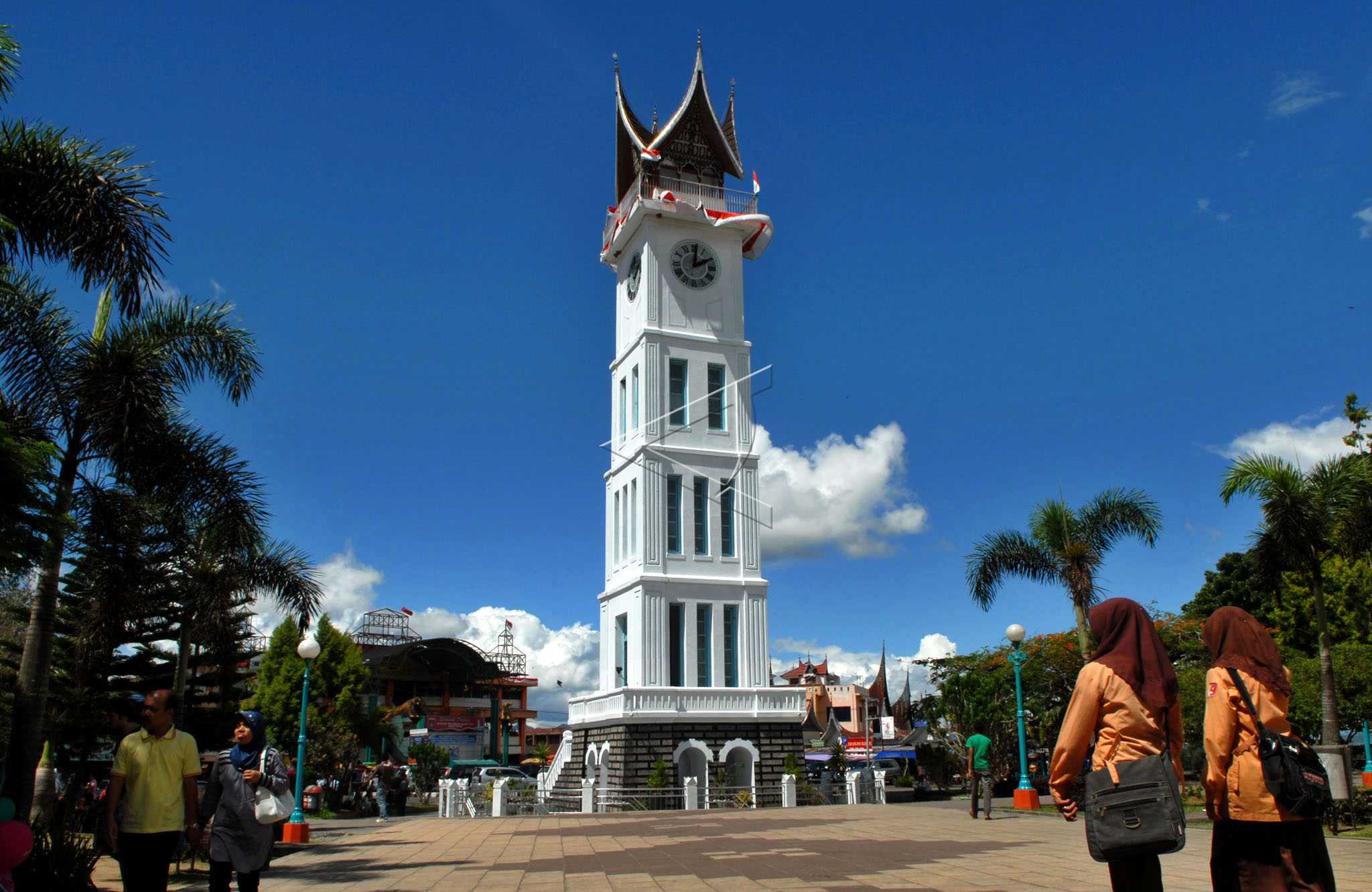 People walk around Jam Gadang tourist attraction area in Bukittinggi, West Sumatra, August 8, 2009. ANTARA FOTO/Ismar Patrizki/dw/pras.
