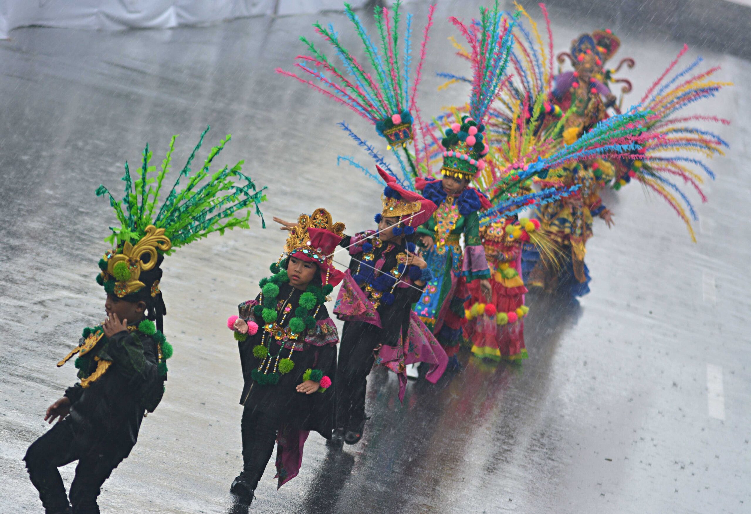Several children participate in the 16th Jember Fashion Carnaval (JFC) Kids themed “Victory” in Jember, East Java, August 10, 2017.