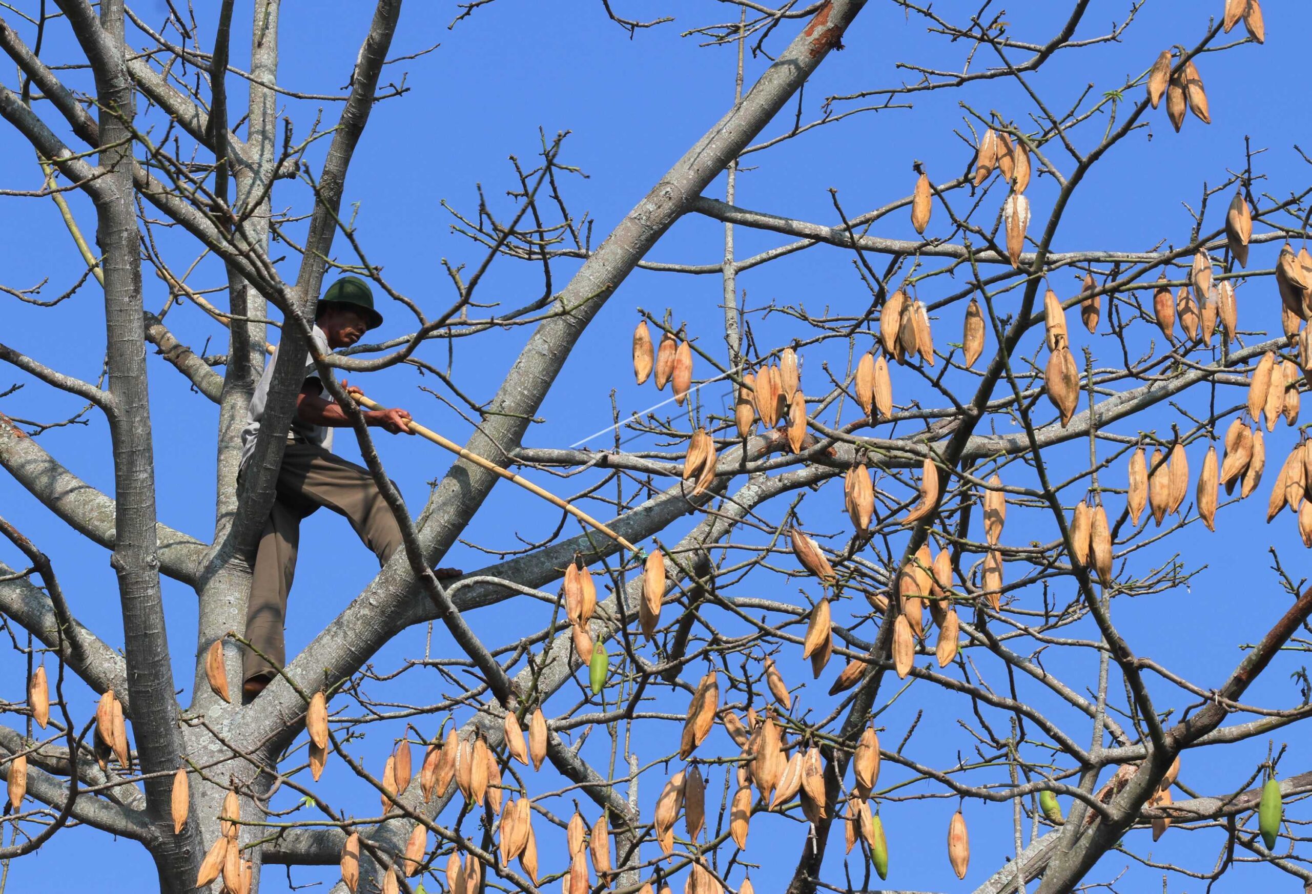 A resident harvests kapok randu to be sold to a fabric processing plant in Comb Village, Batu, East Java, September 7, 2012. ANTARA FOTO/Ari Bowo Sucipto/sa.