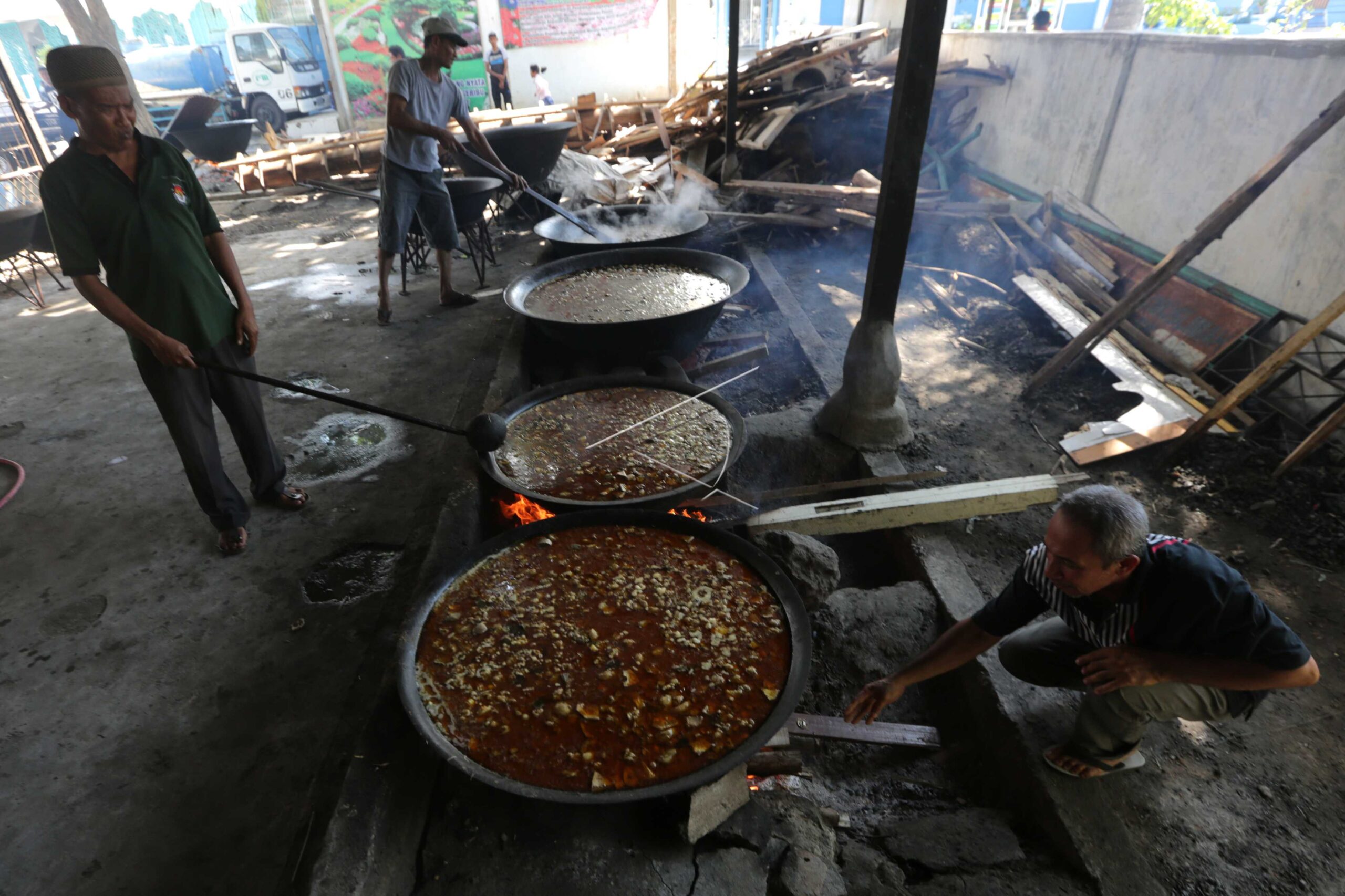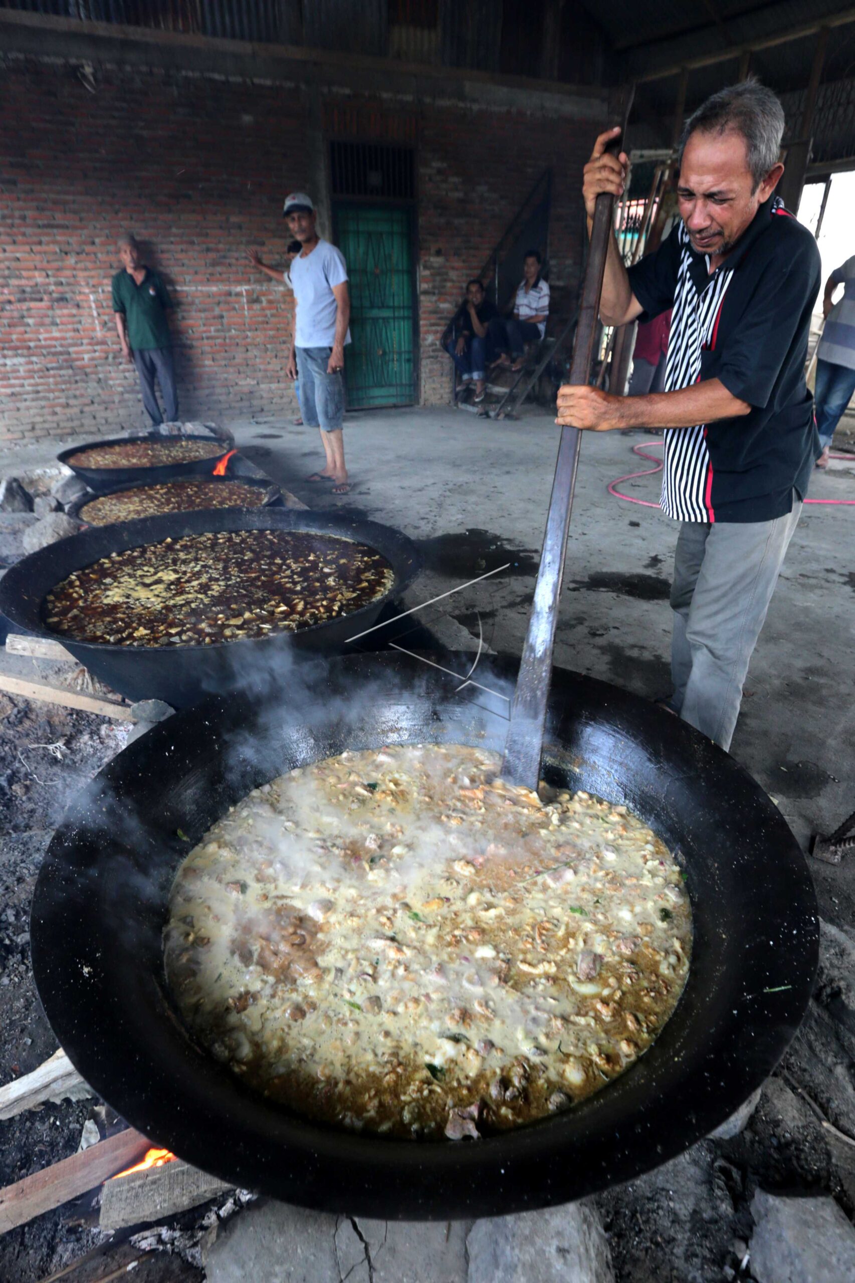 Residents cook beulangong (beef curry) soup to be enjoyed together during Ramadan feast tradition in Lambhuk Ulee Kareng Village, Banda Aceh, Aceh, May 18, 2019. ANTARA FOTO/Irwansyah Putra/hp/dw/sa.