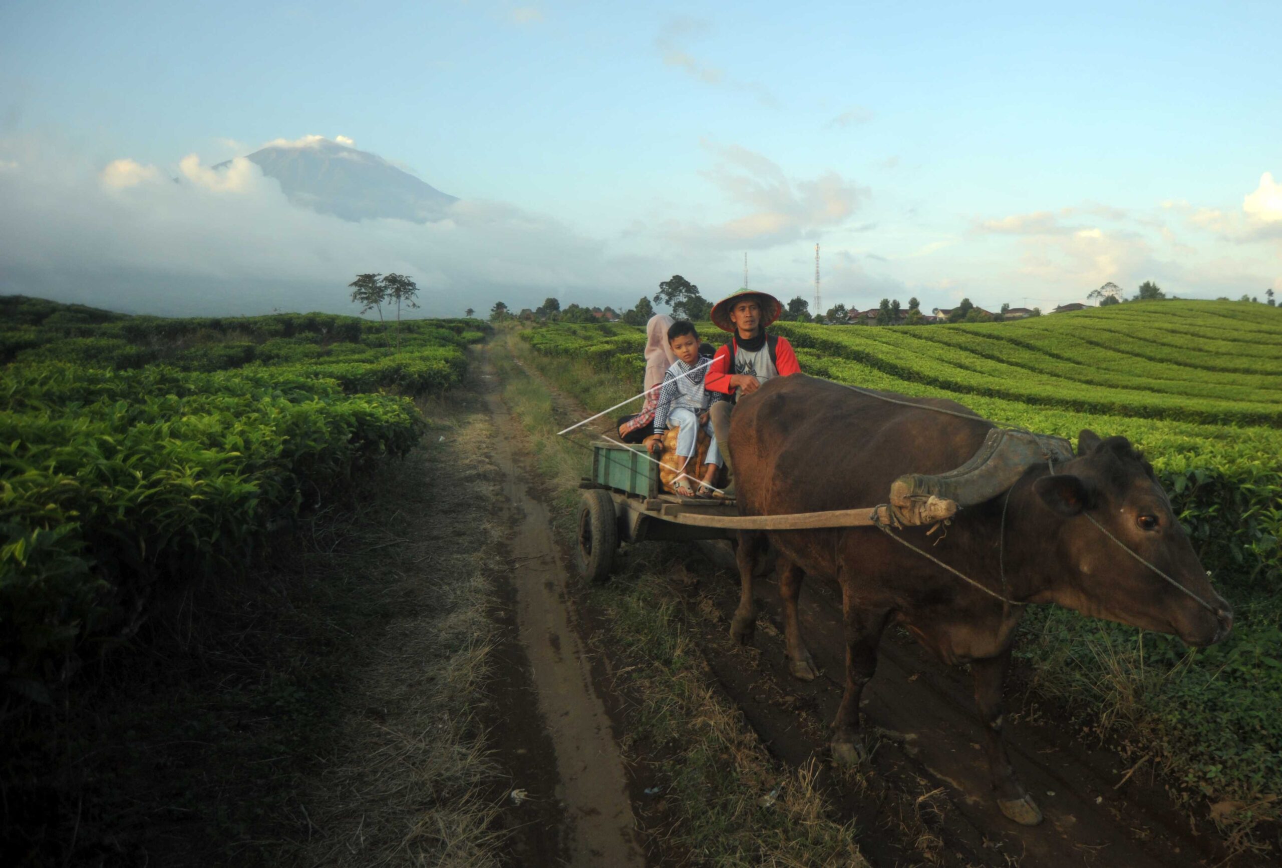A farmer and his son bring the harvest using an bufallo cart in Lindung Jaya Village, Kerinci, Jambi, November 30, 2019. ANTARA FOTO/Iggoy el Fitra/foc/dw/nym/sa.