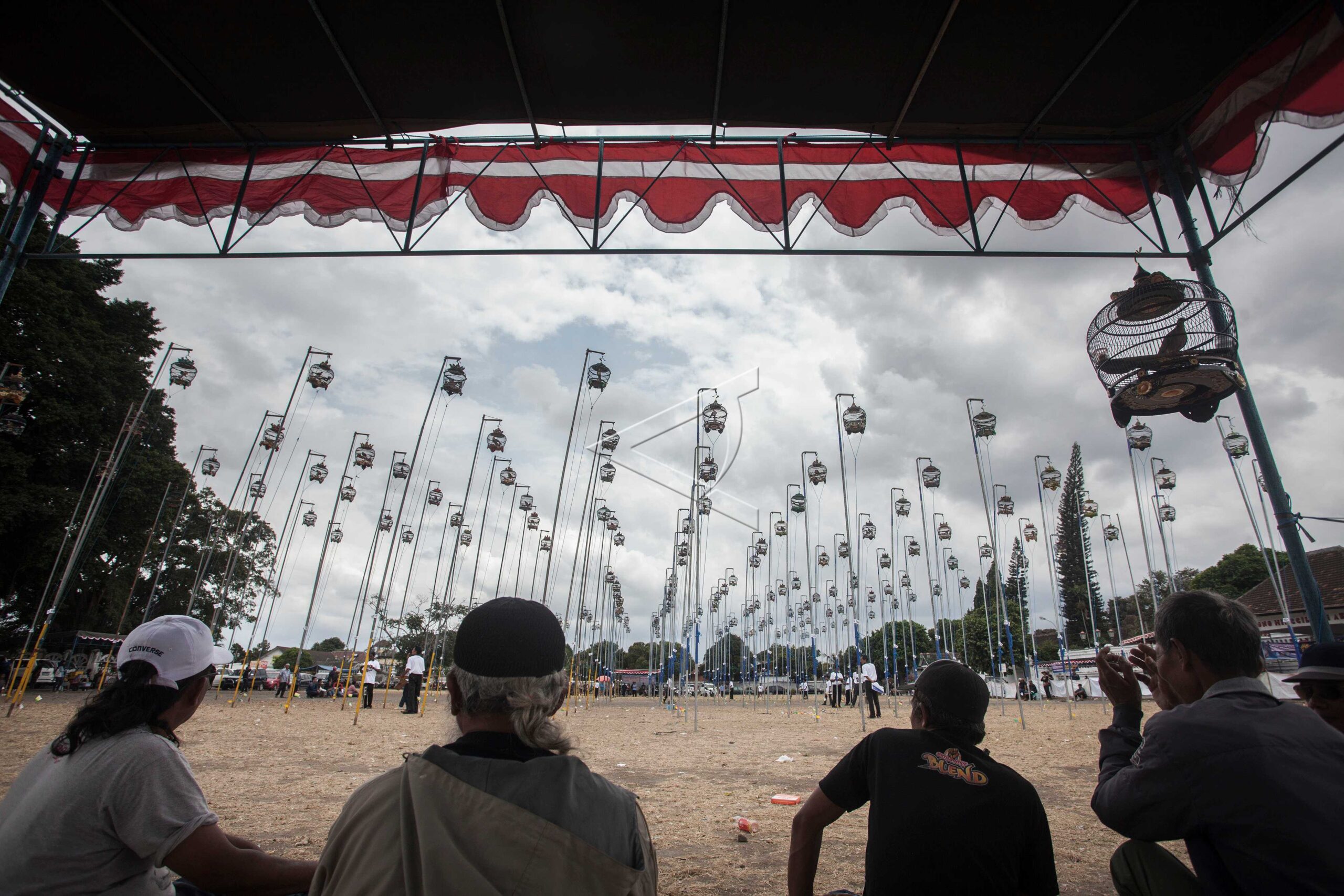 Residents observe the judging process during the King Derkuku Cup chirping bird competition in South Square, Yogyakarta, September 24, 2017. ANTARA FOTO/Andreas Fitri Atmoko/foc/dw/nym/sa.