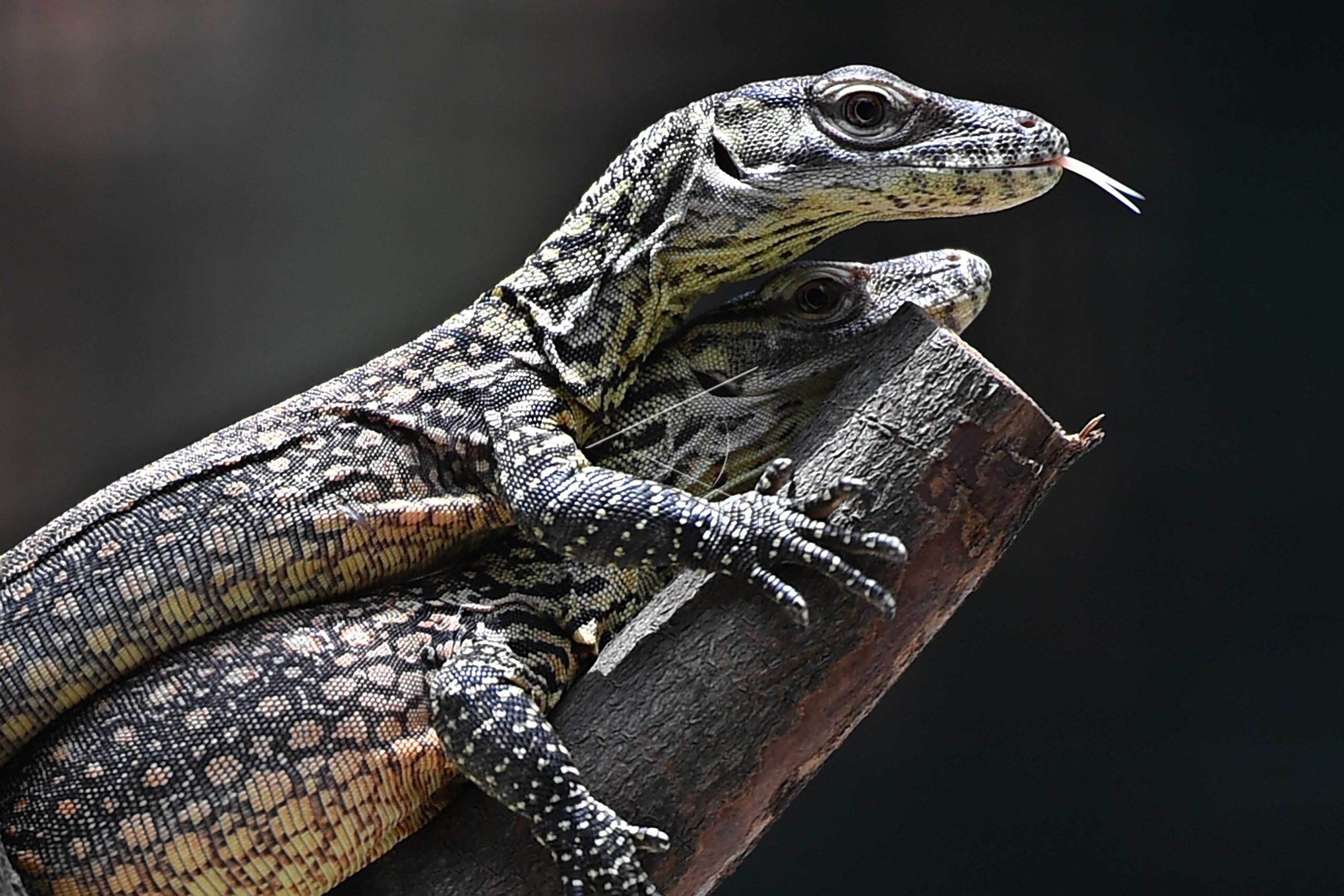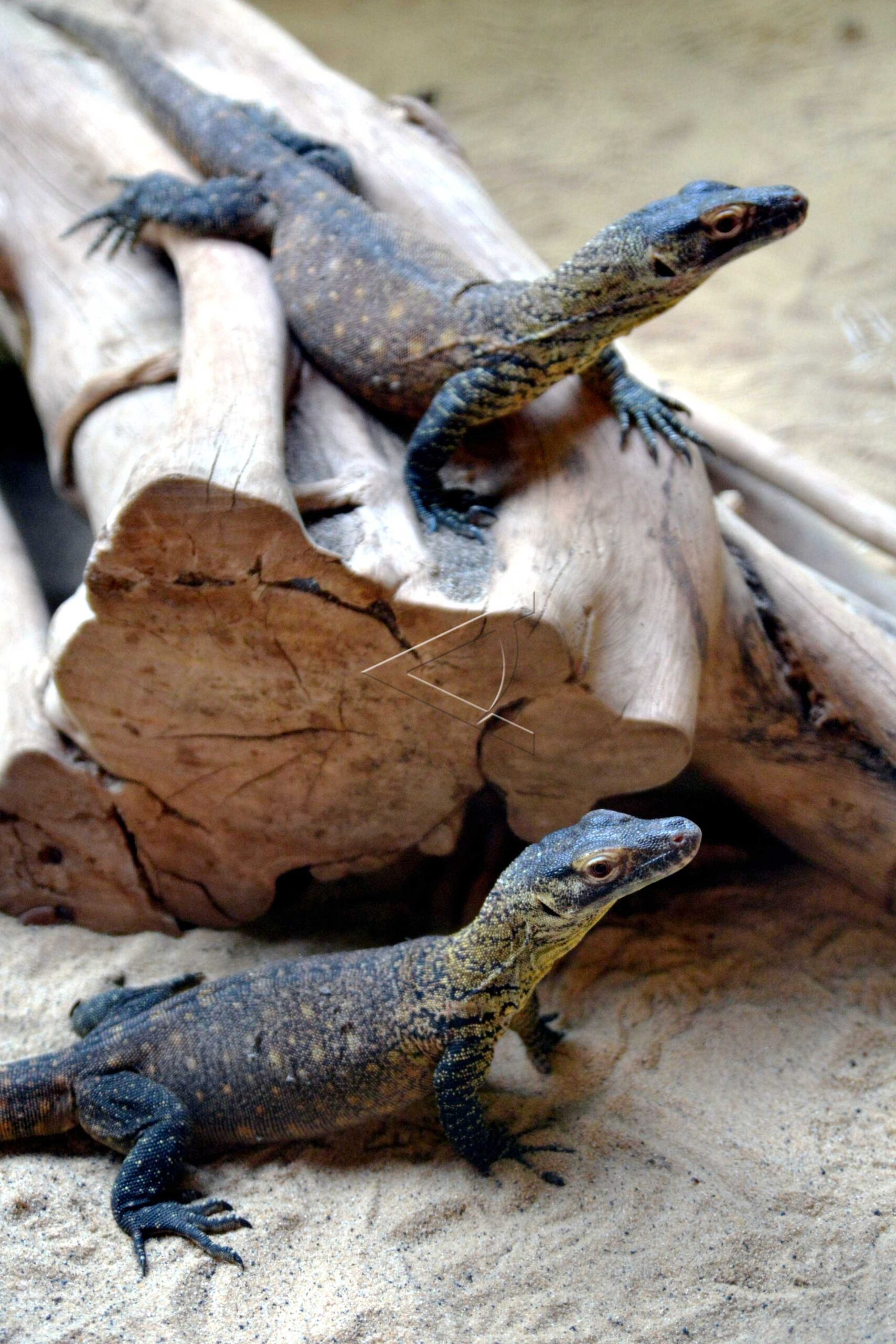 Several Komodo cubs (Varanus komodoensis) are in special cage, at the Cub Animal Care complex (Nursery) Surabaya Zoo (KBS), August 9, 2014. A total of 17 Komodo cubs hatch successfully at Surabaya Zoo, following two Komodo mothers who laid 39 eggs who are currently entering the hatching stage for seven months. ANTARA FOTO/Eric Ireng/Koz/mes/hp/sad.