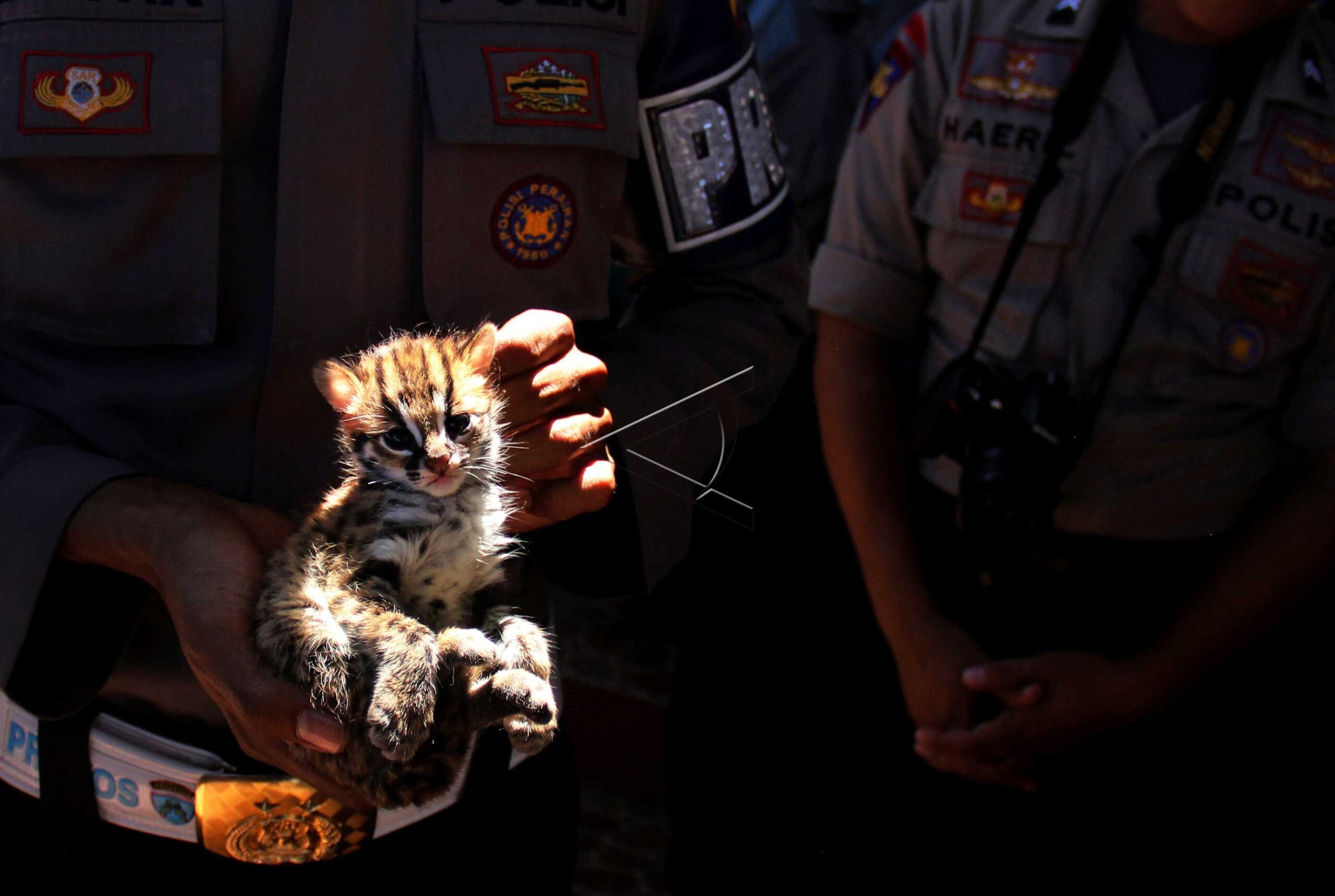 Banten Natural Resources Conservation Center (BKSDA) rescues a Leopard cat (Prionailurus bengalensis) and gets it in the cage, Serang, July 27, 2019. ANTARA FOTO/Asep Fathulrahman/dw/tom/sad.
