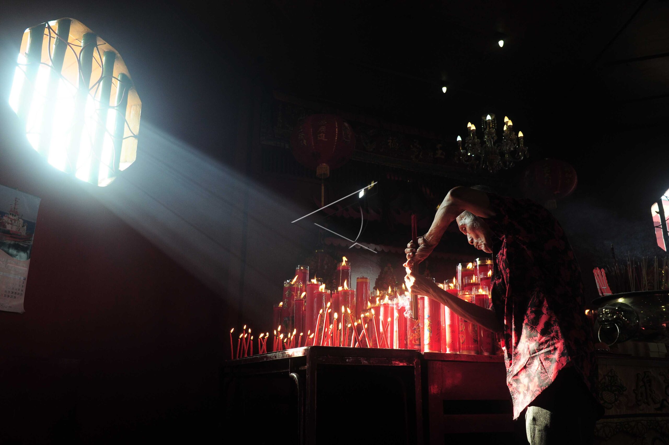 A Chinese resident lights candles while praying at the 2570 Lunar New Year’s Eve at Siau San Teng Temple, in Kampung Manggis, Jambi, February 5, 2019. ANTARA FOTO/Wahdi Septiawan/foc/dw/nym.
