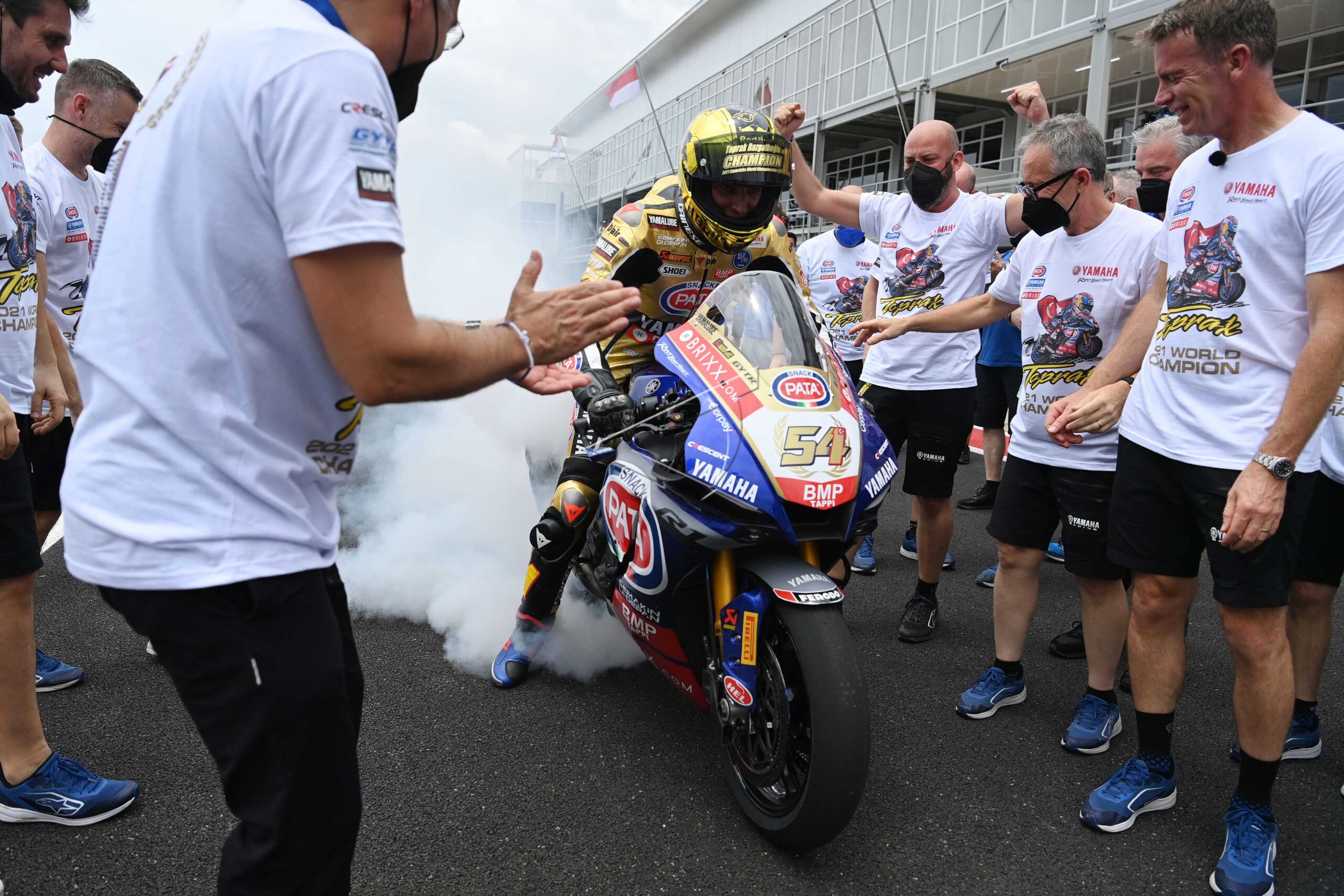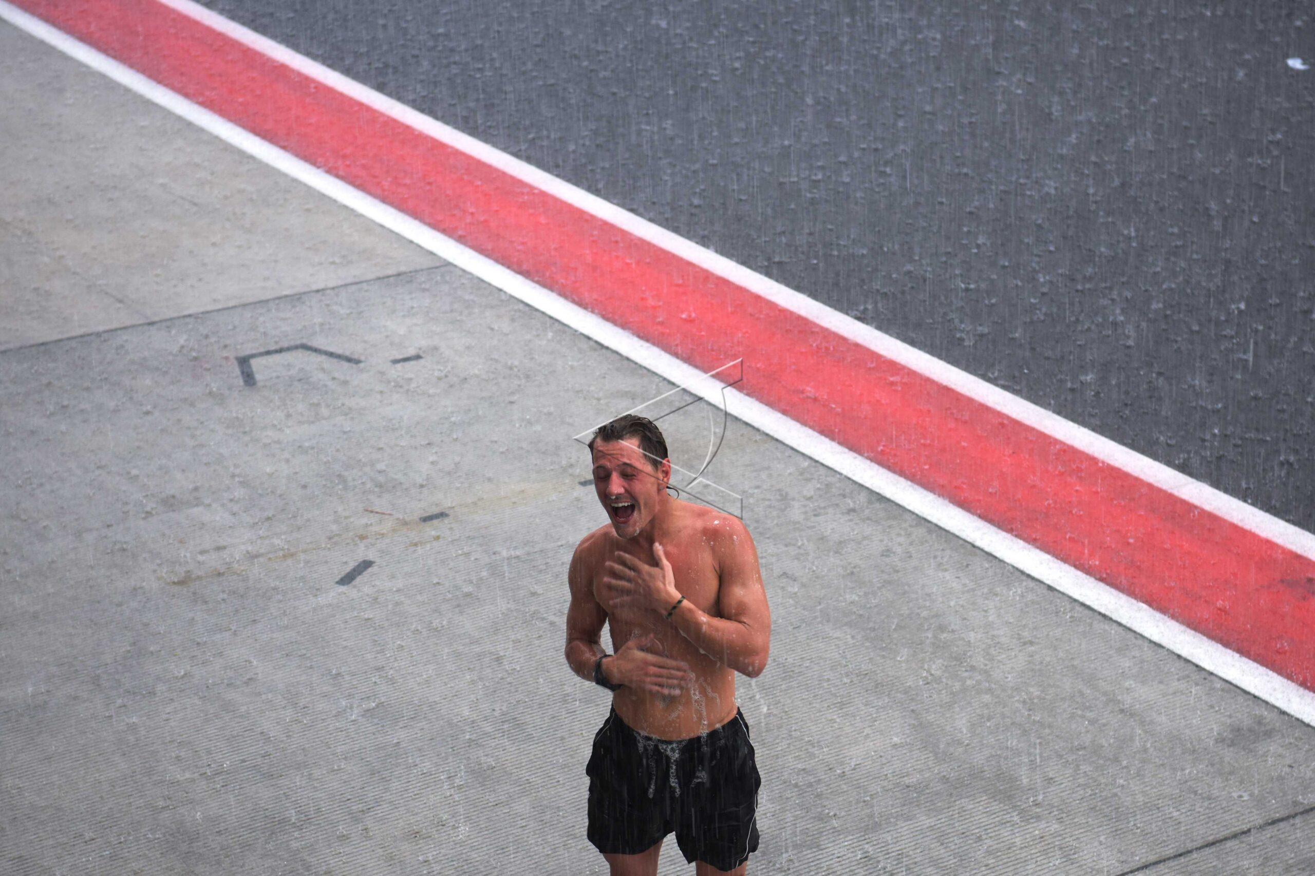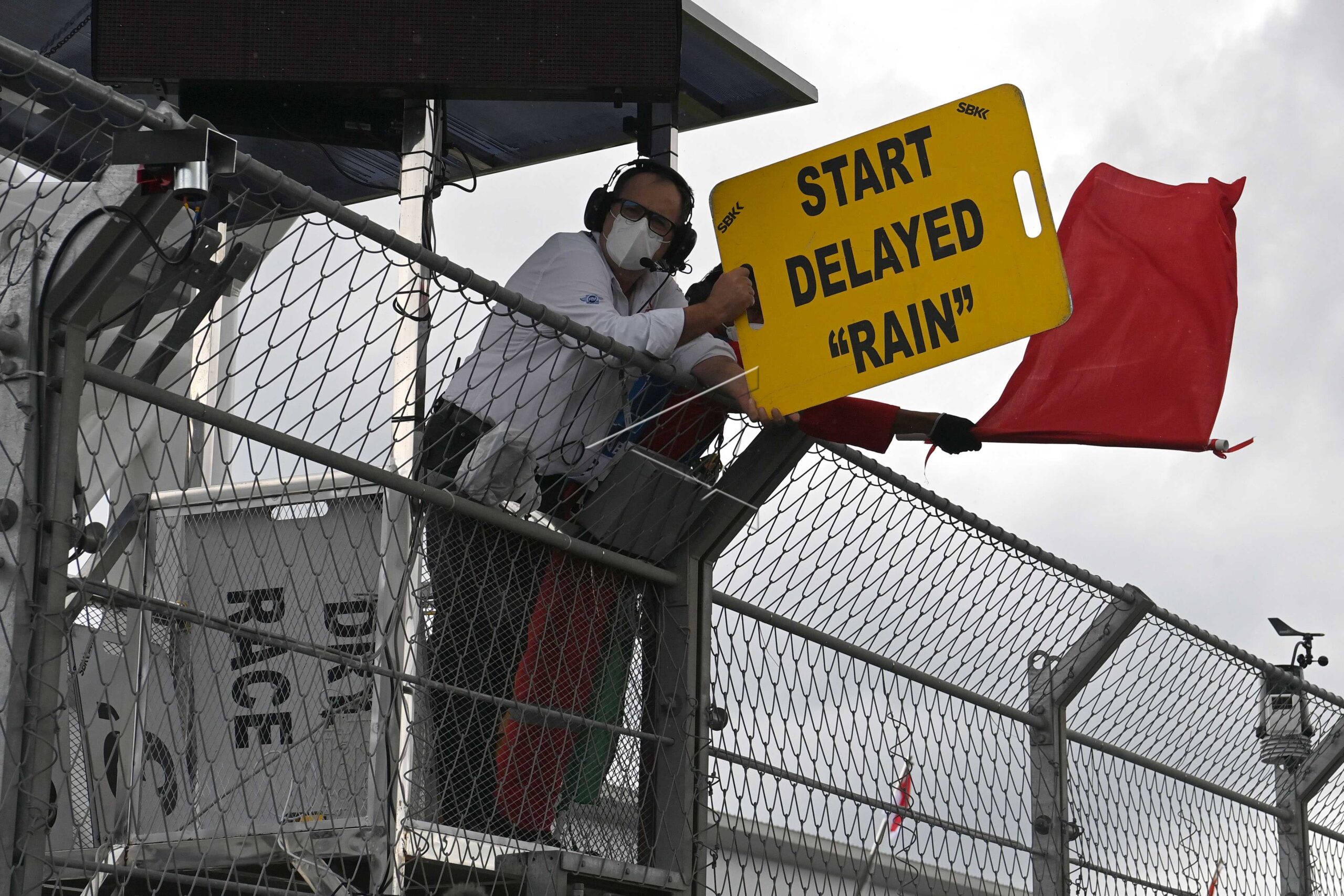 Ten Kate Racing Yamaha racer Dominique Aegerter who also WorldSSP 2021 World Champion stands in the rain in front of the paddock of Pertamina Mandalika International Street Circuit, Central Lombok, West Nusa Tenggara.