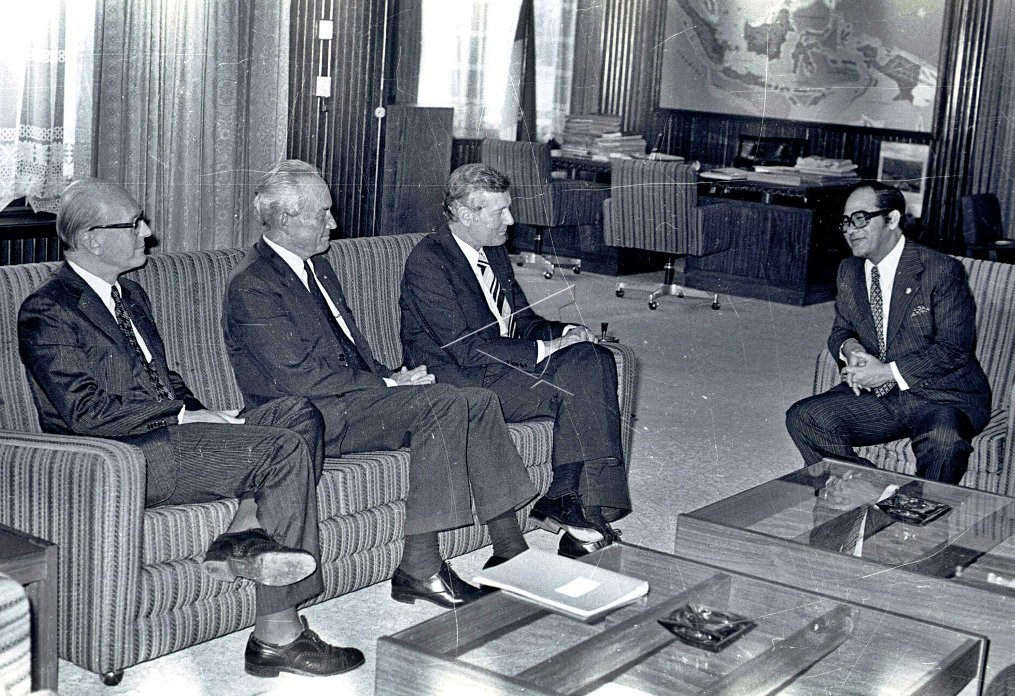 Minister of People’s Welfare Soerono (right) meets Minister of Cooperation Development Affairs of Netherland Jan de Koning in Jakarta, September 12, 1978. ANTARA FOTO/Ali Anwar/Sr/asf/tom.