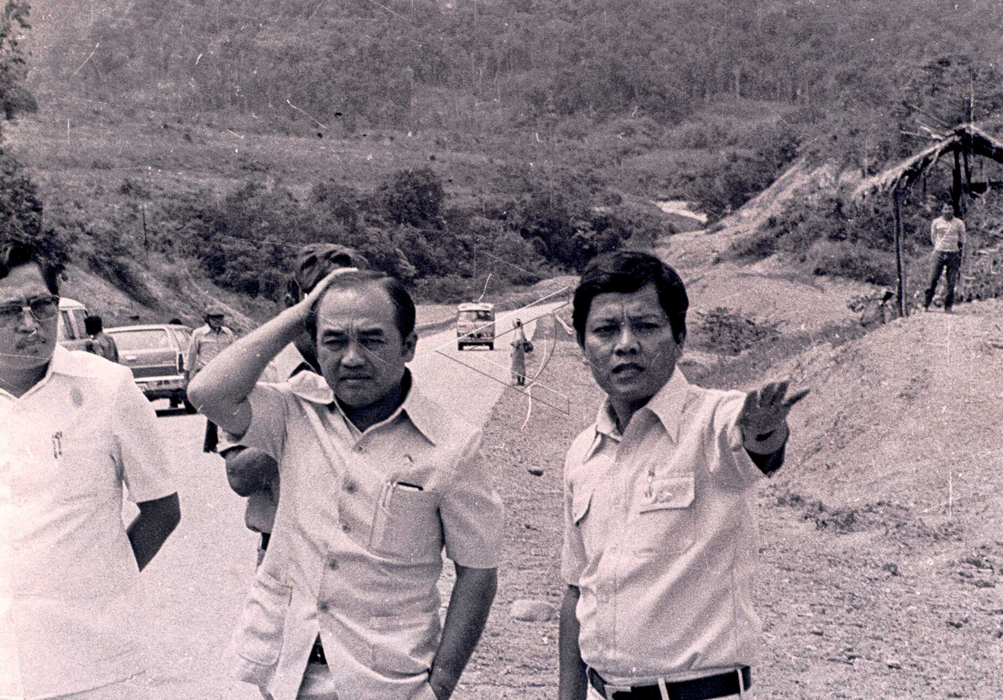 Minister of Public Works Purnomosidi visits landslide site in Jalan Sawah Tambang en route from West Sumatra to Jambi, August 23, 1978. ANTARA FOTO/Pdg/SR/asf/tom.
