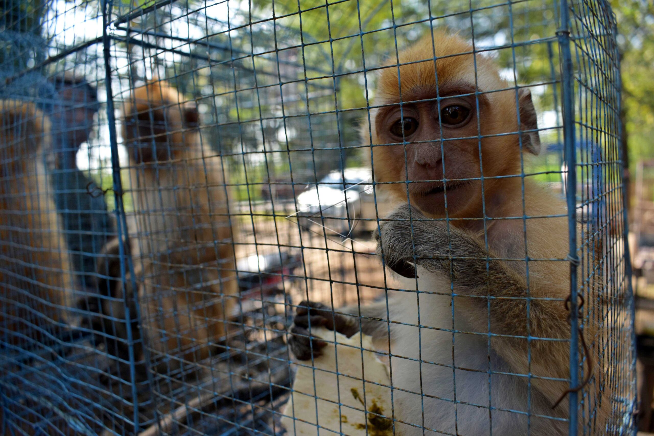 Monkey (Presbytis thomasi) are seen inside a cage at Saradan Bird Market in Madiun, East Java, May 5, 2017. ANTARA FOTO/Siswowidodo/dw/tom.