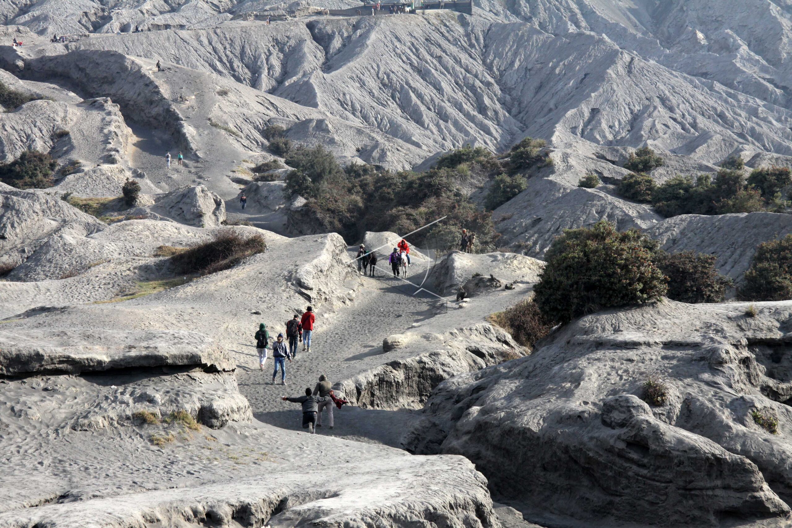 Tourists walk to the crater of Mount Bromo in Probolinggo, East Java, September 28. 2019. ANTARA FOTO/Umarul Faruq/dw/tom.