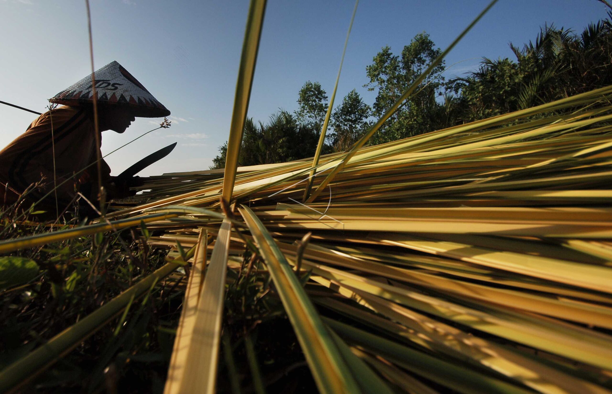 A resident cuts the shoots (young leaves) of a nipah tree as raw material for wrapping tobacco (traditional cigarettes) in the Parupuk Tabing area, Padang, West Sumatra, January 28, 2015. ANTARA FOTO/Iggoy el Fitra/pd/dw/nym/sa.