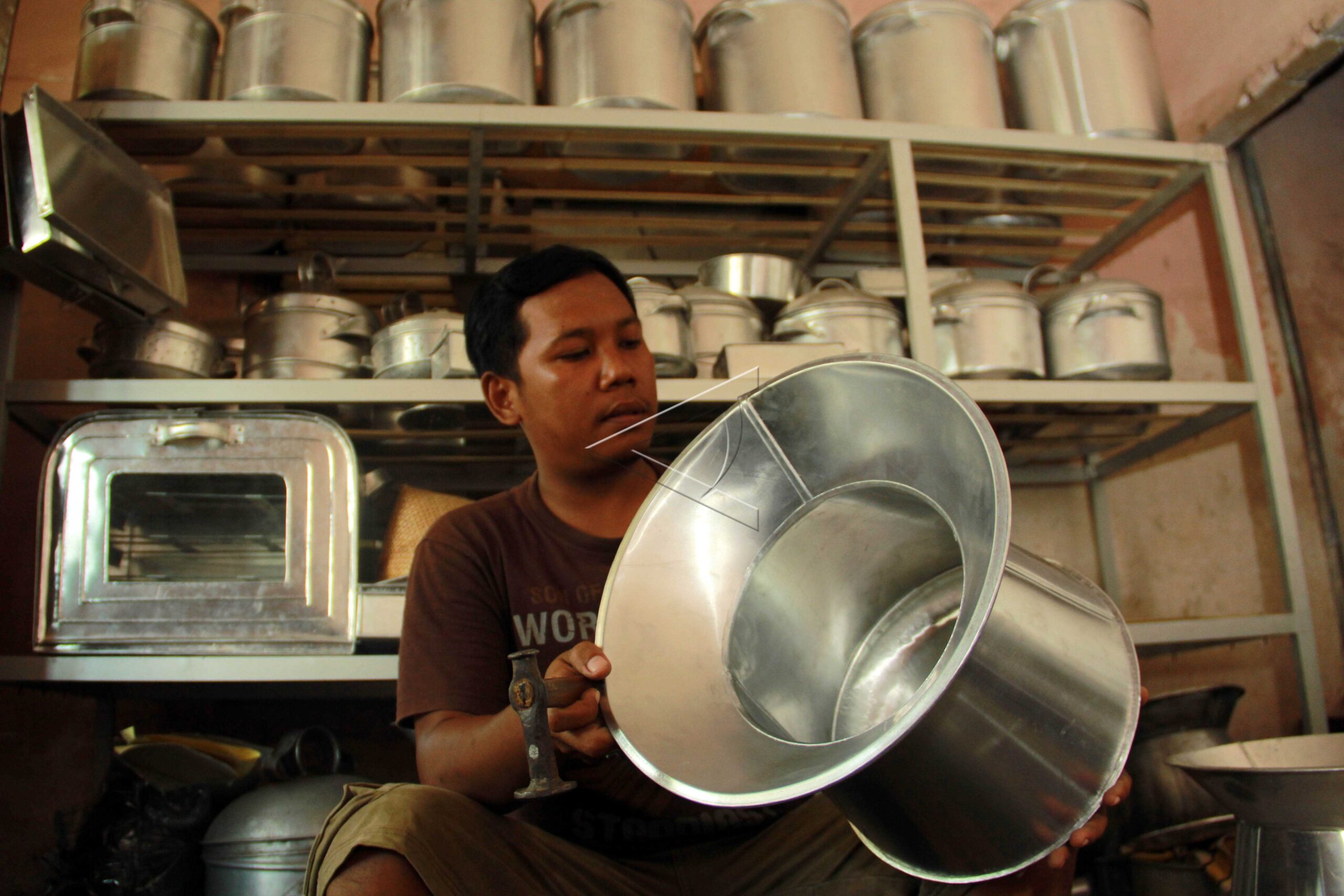 A worker inspects The Osing Tribe’s signature dandang in Gintangan, Banyuwangi, East Java, July 7, 2016. ANTARA FOTO/ Budi Candra Setya/dw/tom/sa.
