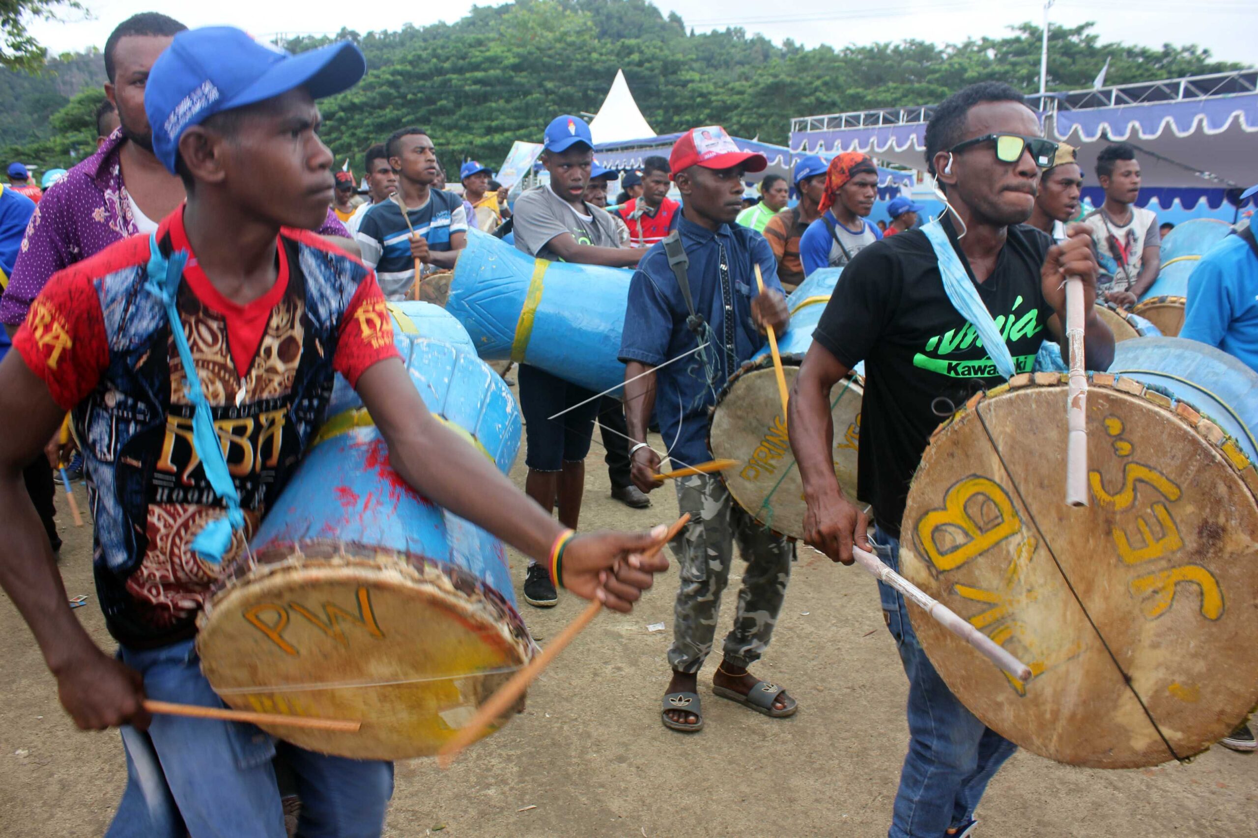 Residents play the Papuan traditional musical instrument Suling Tambur in Waisai City, Raja Ampat Regency, West Papua, March 12, 2017. ANTARA FOTO/Olha Mulalinda/aww/dw/nym