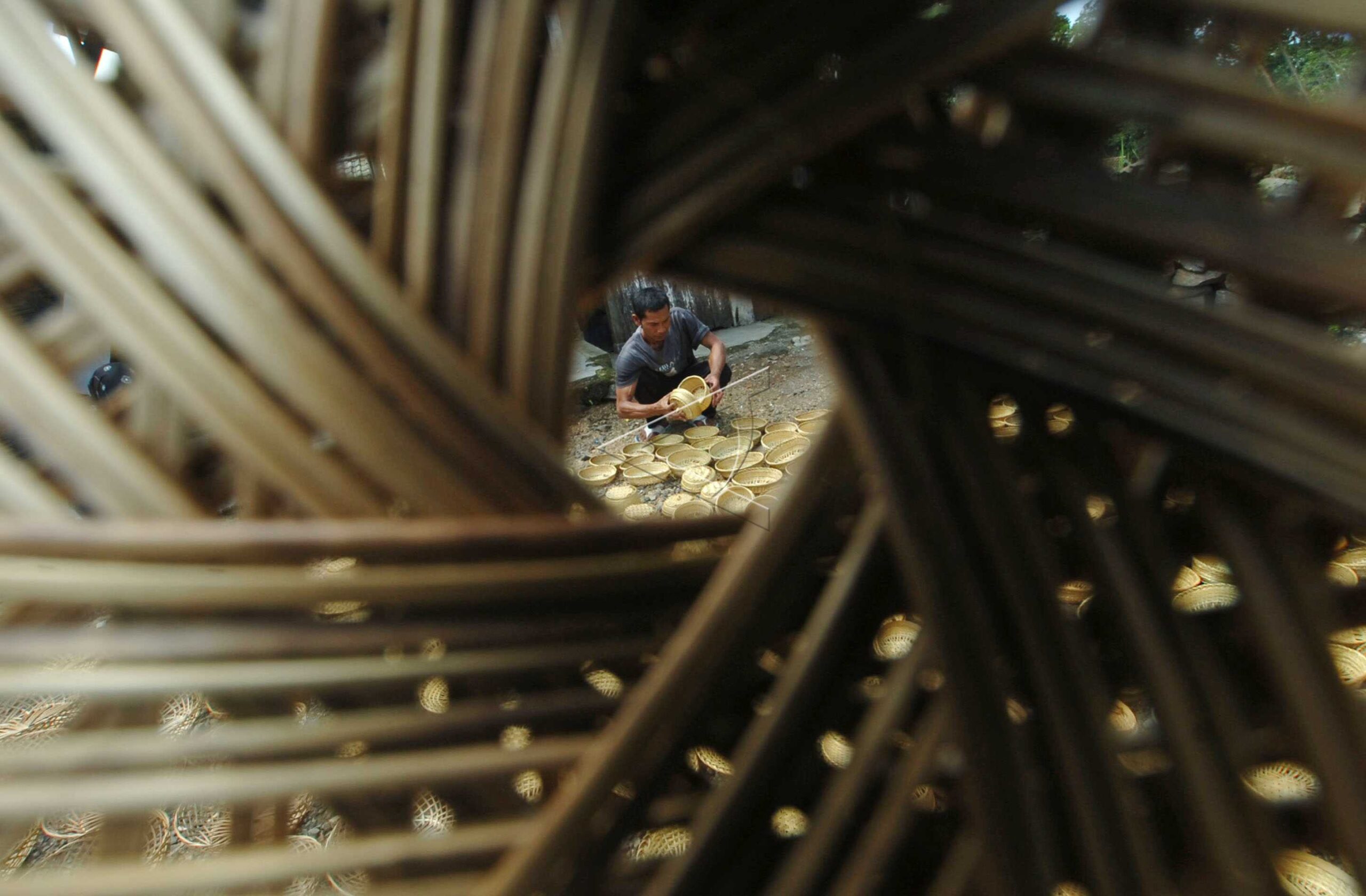 A Craftsman drying parcel baskets in Neglasari Village, Tasikmalaya, West Java, April 25, 2016. ANTARA FOTO/Adeng Bustomi/dw/tom/sa.