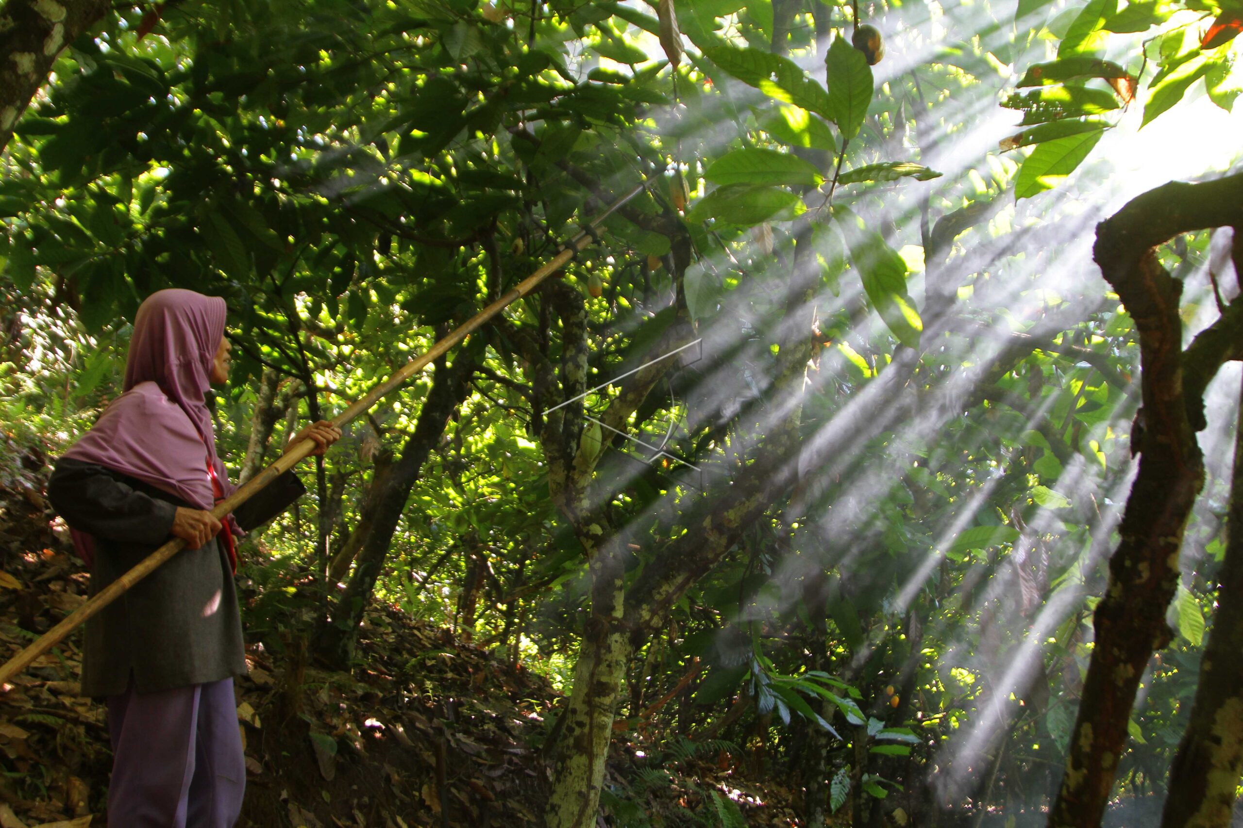 Farmer picks cacao seeds by using wood in her plantation in Ulunggolaka Village, Kolaka, Southeast Sulawesi, May 19, 2019. ANTARA FOTO/Jojon/foc/dw/WSJ.