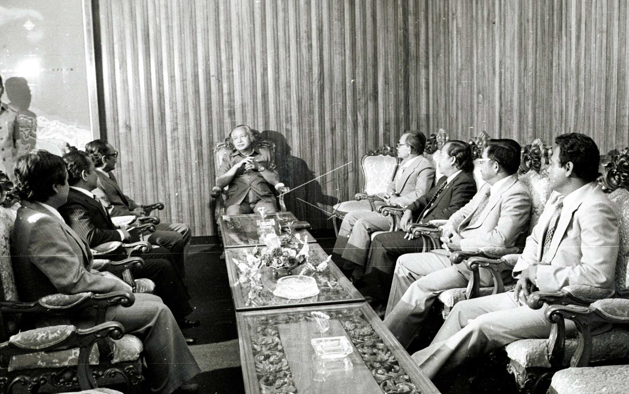 President Soeharto (center) chats with seven members of Indonesian House of Representatives consisting of Deputy Chairman of the DPR / MPR Mashuri, Amin Judowinarno, Andi Mochar, Komar Abdulrachman, Darusmin, Aidarsa Muin and Cholil before leaving for Romania and Finland for a 17-day goodwill mission upon invitation. the two Eastern European countries, at Bina Graha, Jakarta, […]