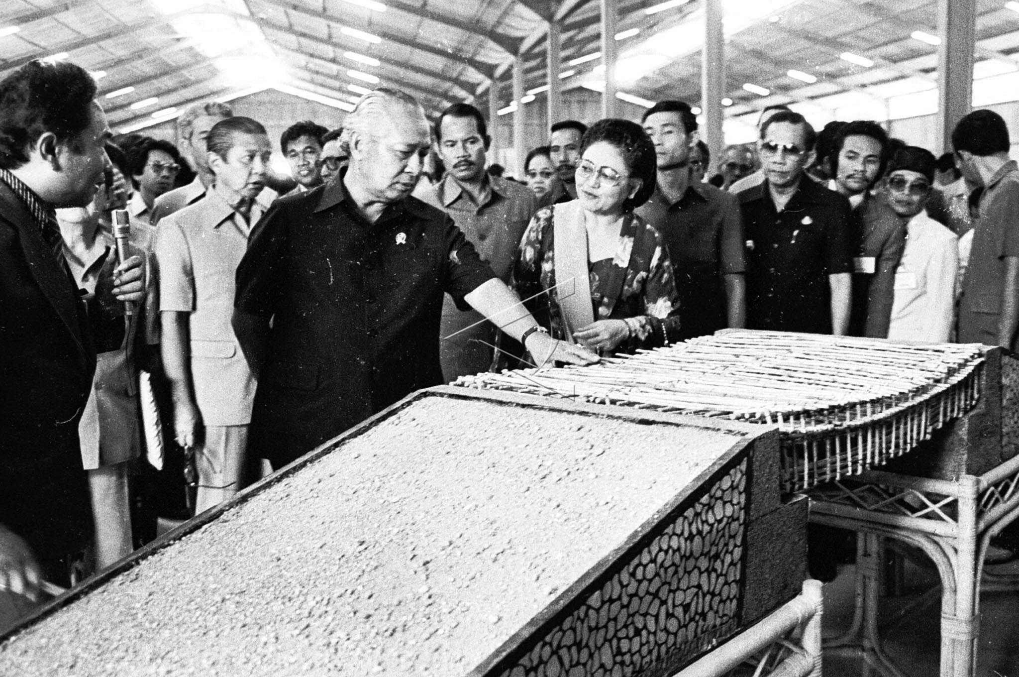 President Soeharto (third left) with First Lady Tien Soeharto (fifth left) observe the processed rattan on the sidelines of inauguration of the kud rattan development and processing center and use of the new building BKKBN Southeast Sulawesi, on 38th anniversary of cooperatives and the 15th anniversary of Family Planning in Kendari, Southeast Sulawesi, July 12, […]