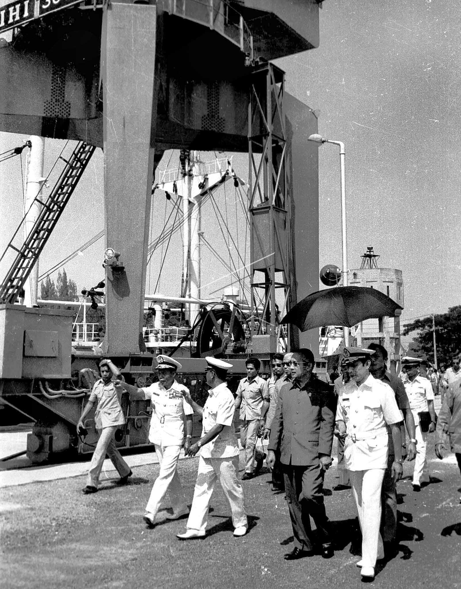 President Soeharto reviews Graving Dock of 20,000 tons with name of Irian Dock after inauguration in Irian Jaya, May 22, 1975. ANTARA FOTO/NAS/Koz/hp/asf/tom.