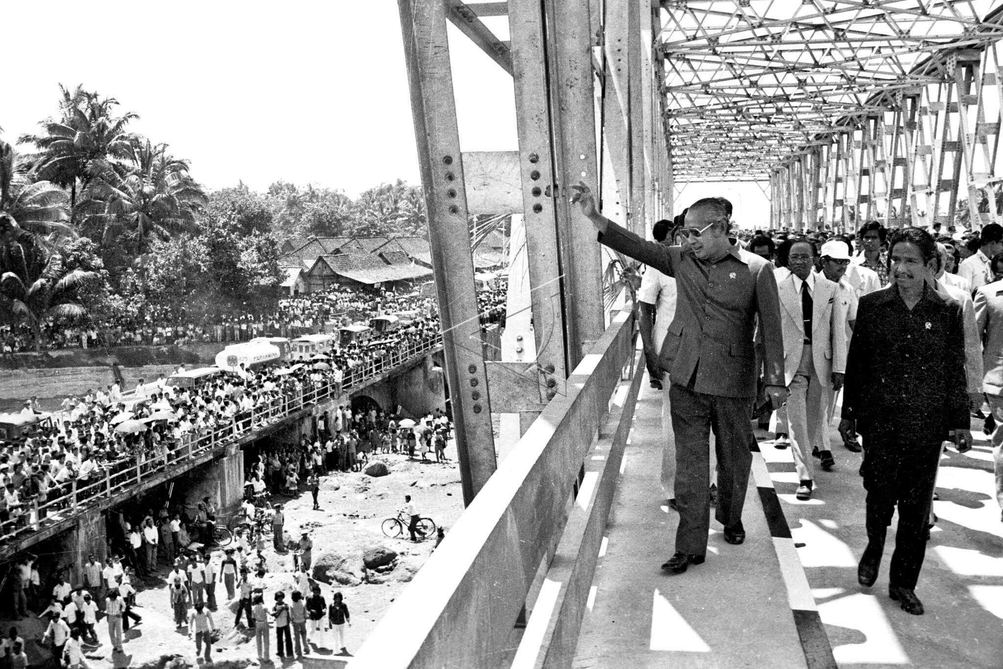 President Soeharto waves hand to people after inaugurating the Krasak Bridge, January 28, 1977. ANTARA FOTO/Yogyakarta/ss/hp/asf/tom.