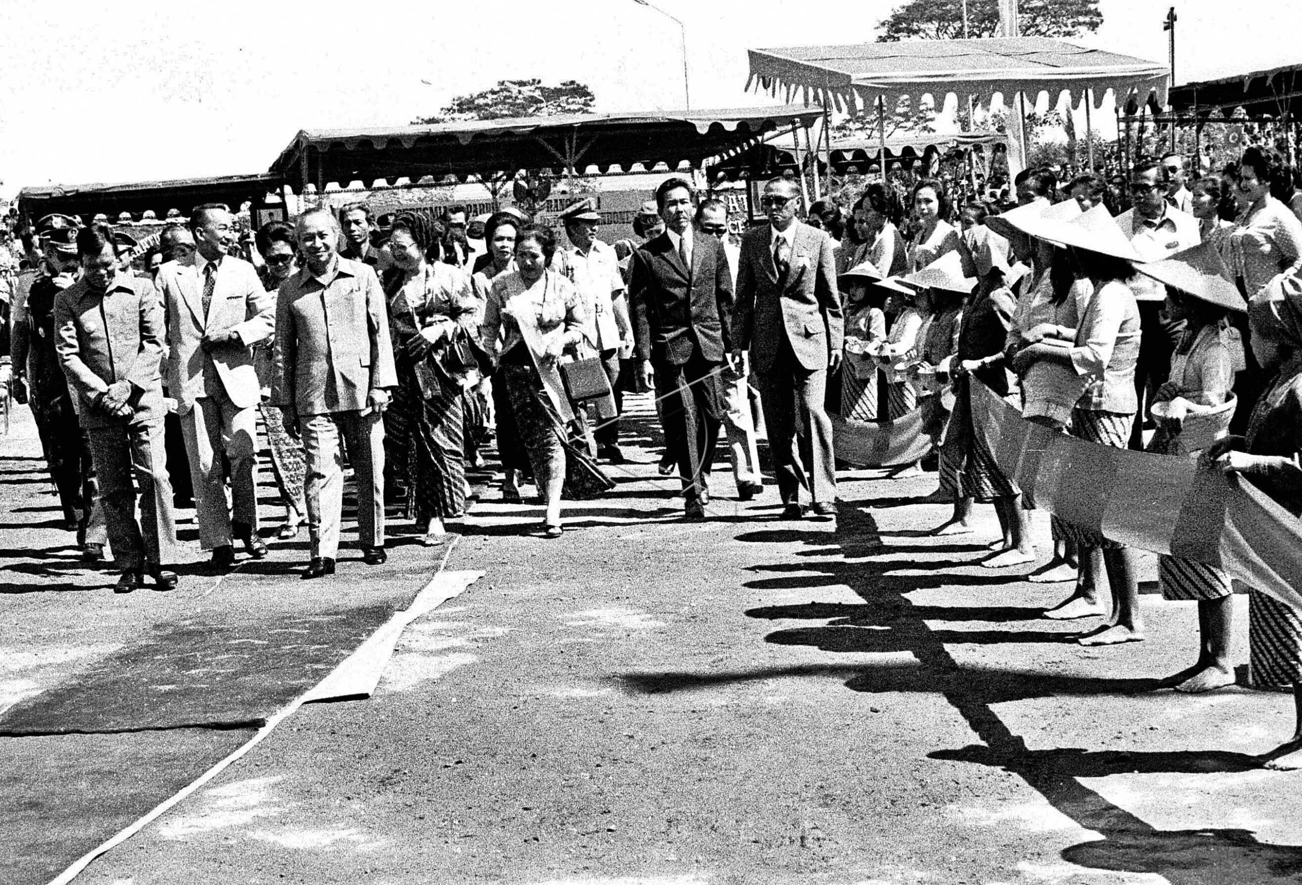 President Soeharto and his entourage leave after inaugurating Rancabali tea factory, which is the biggest and the most modern tea factory in the world, in West Java, July 8, 1976. ANTARA FOTO/Rachman/ss/hp/asf/tom.